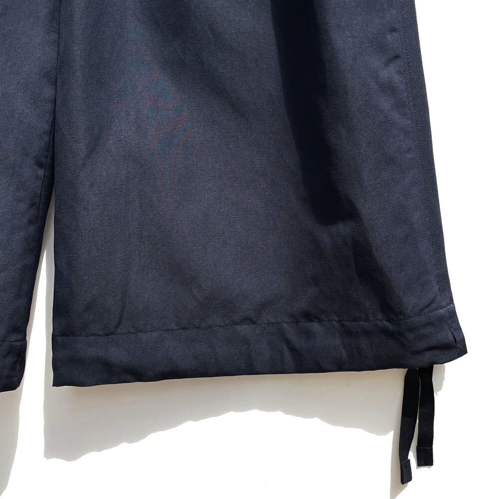 [ALVISTA] 3rd Issue. Called Bombay Bloomers because it was used in Bombay (now Mumbai), a tropical trouser worn by British India (British Indian Army) during World War II. Based on the trousers that had been used. Since it was designed for wearing in tropical areas, the hem is folded back and fastened with inseam bait to make it half-pants length, but the cord is passed through the hem to squeeze the hem. Knickers like the roots of bloomers, updated so that it can be changed to a balloon silhouette. The cord at the hem has a complicated design and can be put out on both the front and back using the seam hole. Ankle length with a wide silhouette with a unique silhouette balance like a hakama, with a wider hem than the width of the crossover. The button uses this nut button made from Tagwa palm.