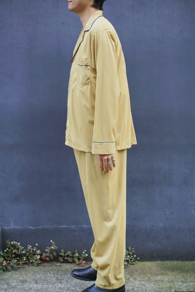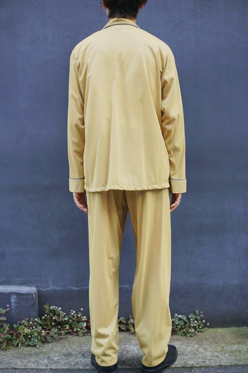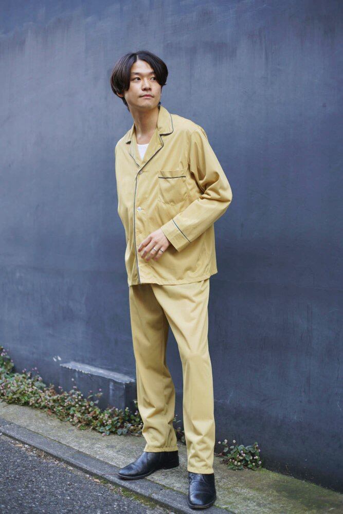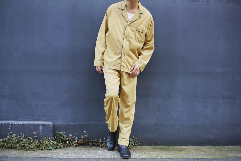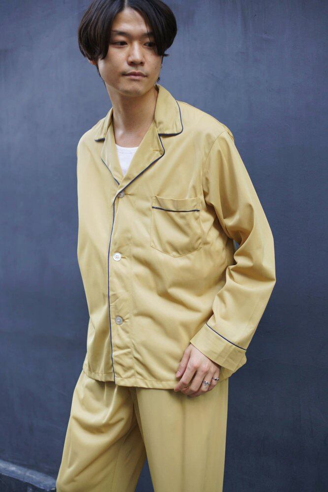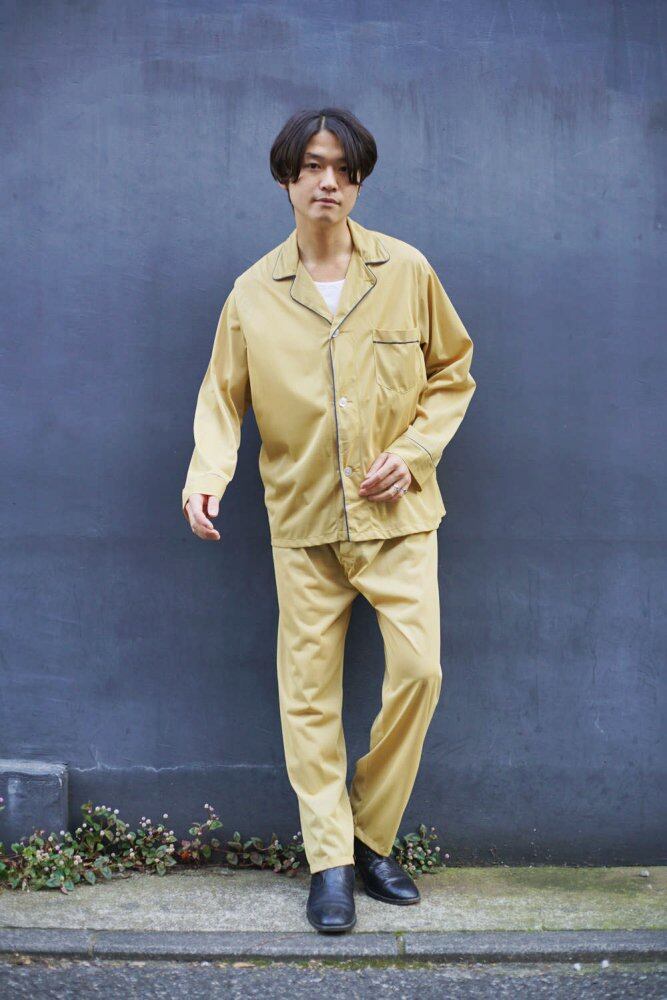 The relaxed style of the three buttons peculiar to vintage pajamas shirts, the rounded collar, and the unpretentious atmosphere create a sense of coordinator.