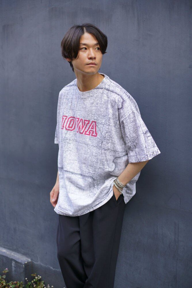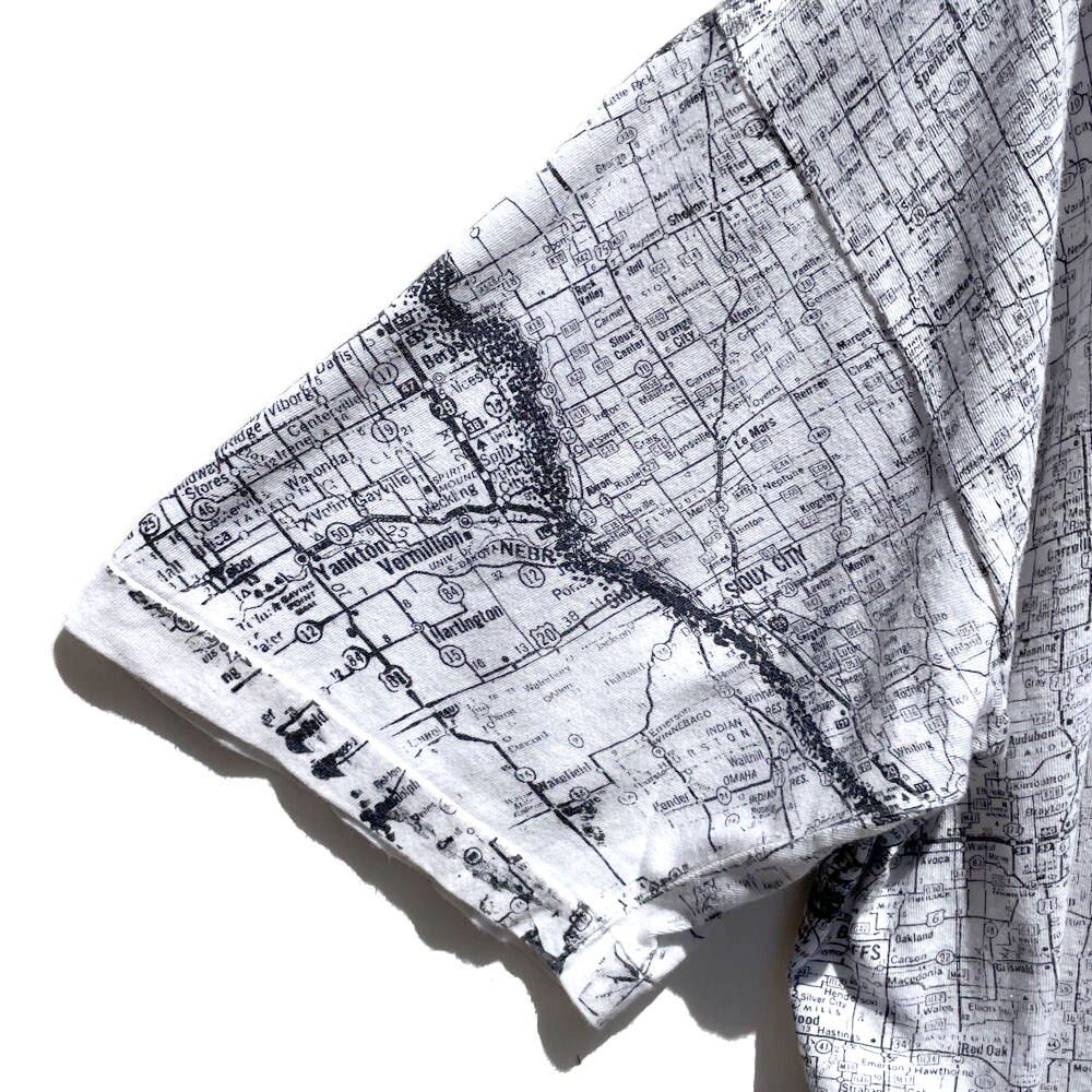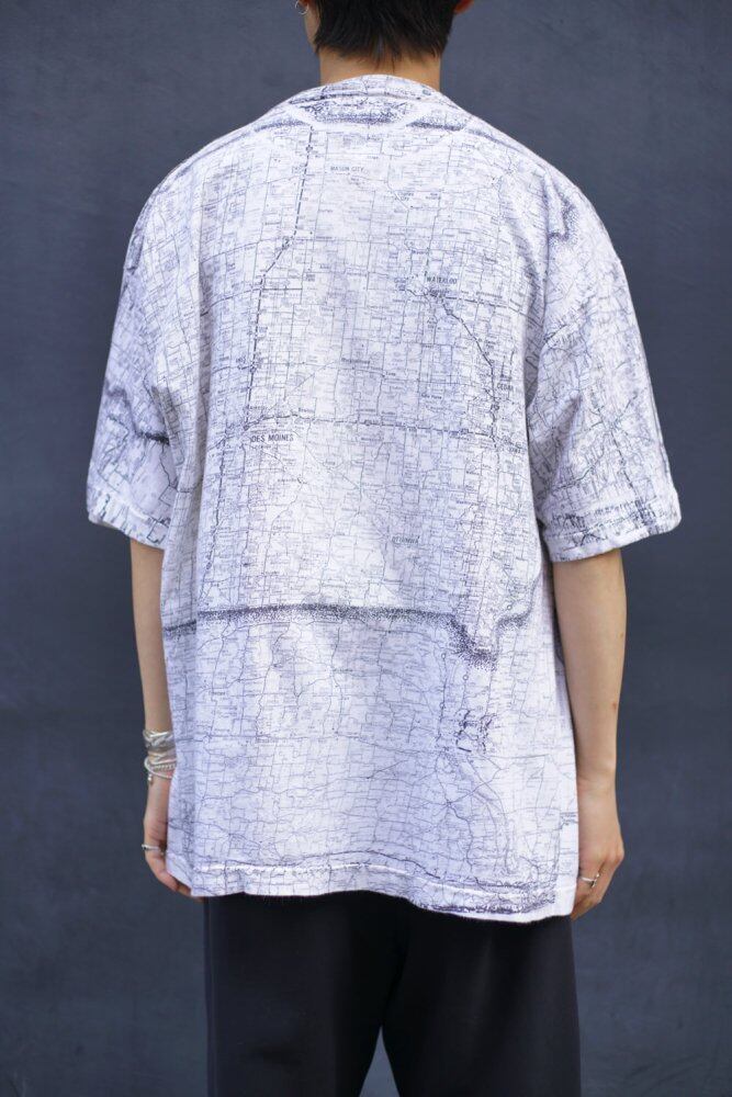 The artwork of the total pattern of the monotone map and the all-over print hand-printed to the rib of the neck are very rare specifications.