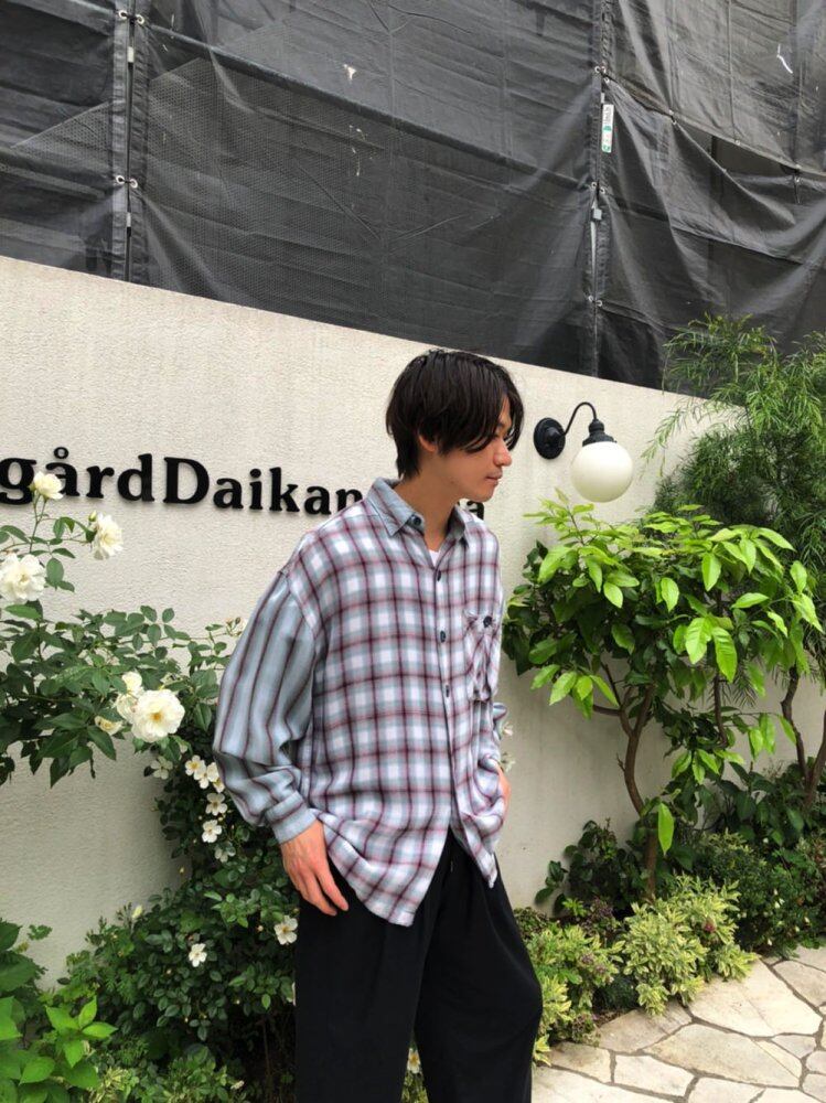 80s vintage rayon shirt Check the body and switch the collar and sleeves with stripes GOOUCH-like playful design