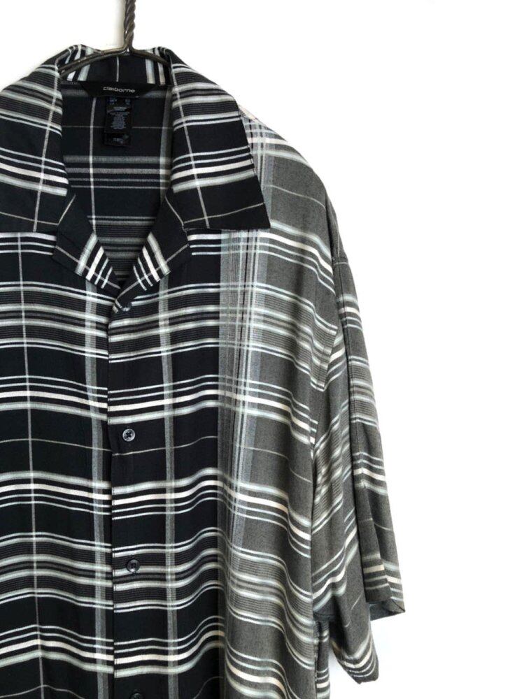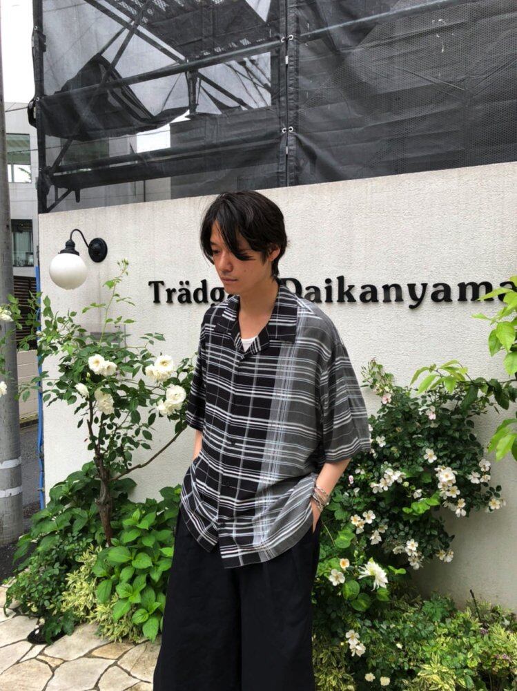 90s short sleeve rayon shirt Black check x gray check is an interesting one to switch between irregular patterns. A soft and cool 100% rayon material fabric with a relaxed and cool over-silhouette shirt. Recommended for cool dark tone coordination.