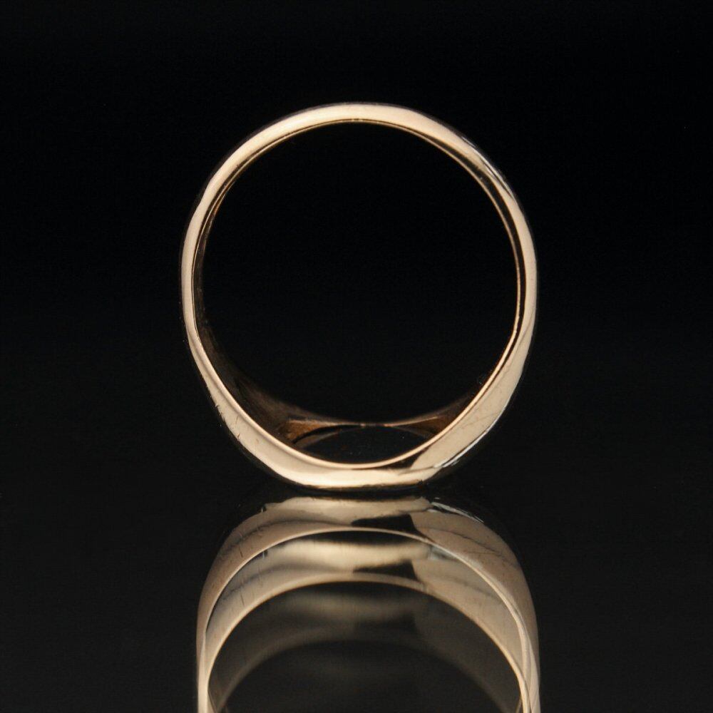 British made signet ring. It is the only ring that is allowed to be worn among British gentlemen who wear good things that can be used for a long time with as little waste as possible. The so-called blood stone top that when Jesus Christ was crucified, fresh blood turned from a wound to a green earth or a stone. It is said to bring spiritual energy from its holiness and has a healing effect. Dark green with red spots and a deep color. A very simple design with a gold body that draws a soft curve and a top only. It is a rare gem that is a profound individual of this age and shows casually while being dignified in size. 375-9ct Gold, Hallmark, 1953 London Assay Office. Please check the condition in the photo and purchase after acknowledging the characteristics of vinteg.