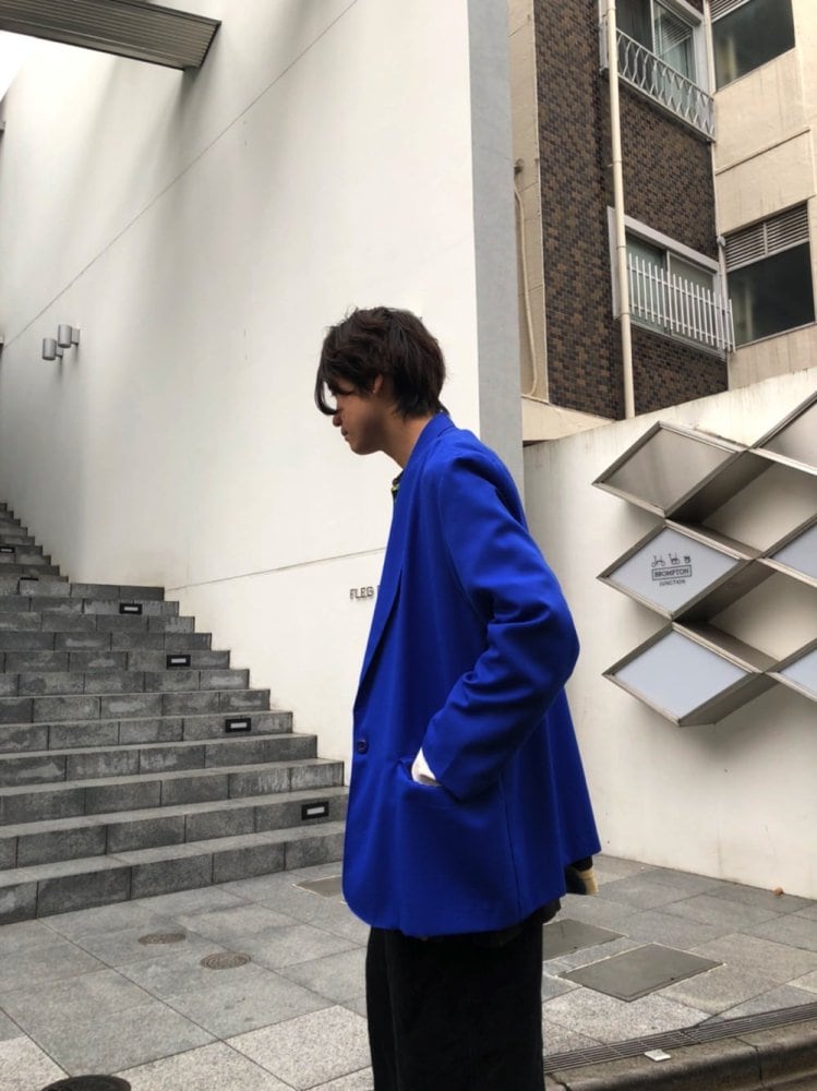 80s vintage jacket The bright blue color is an eye-catching piece. A light jacket made of light polyester and rayon material that can be worn like a shirt.