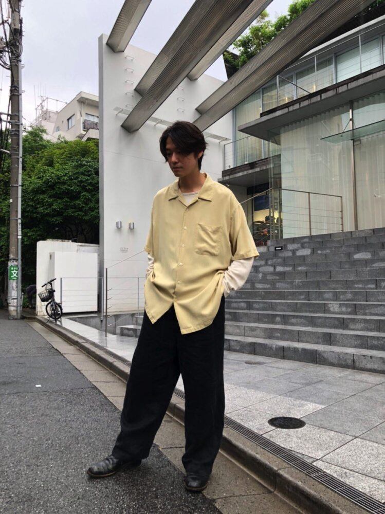90s short-sleeved silk shirt Good and mature off-beige silk shirt 100% silk fabric that feels soft and soft and falls off.