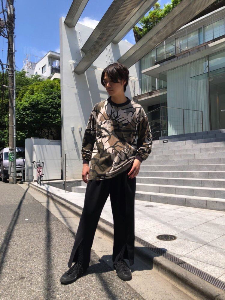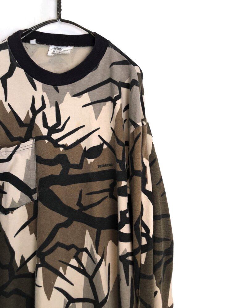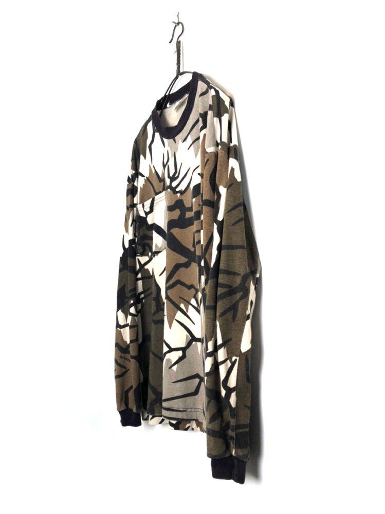 90s long sleeve T-shirt Brown, beige, black color pop art camouflage pattern is an interesting one. Moderately loose and easy-to-match silhouette, soft and comfortable 100% cotton material