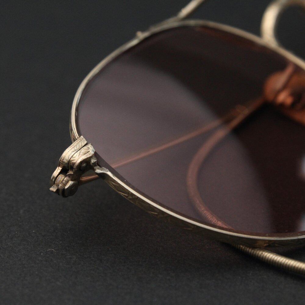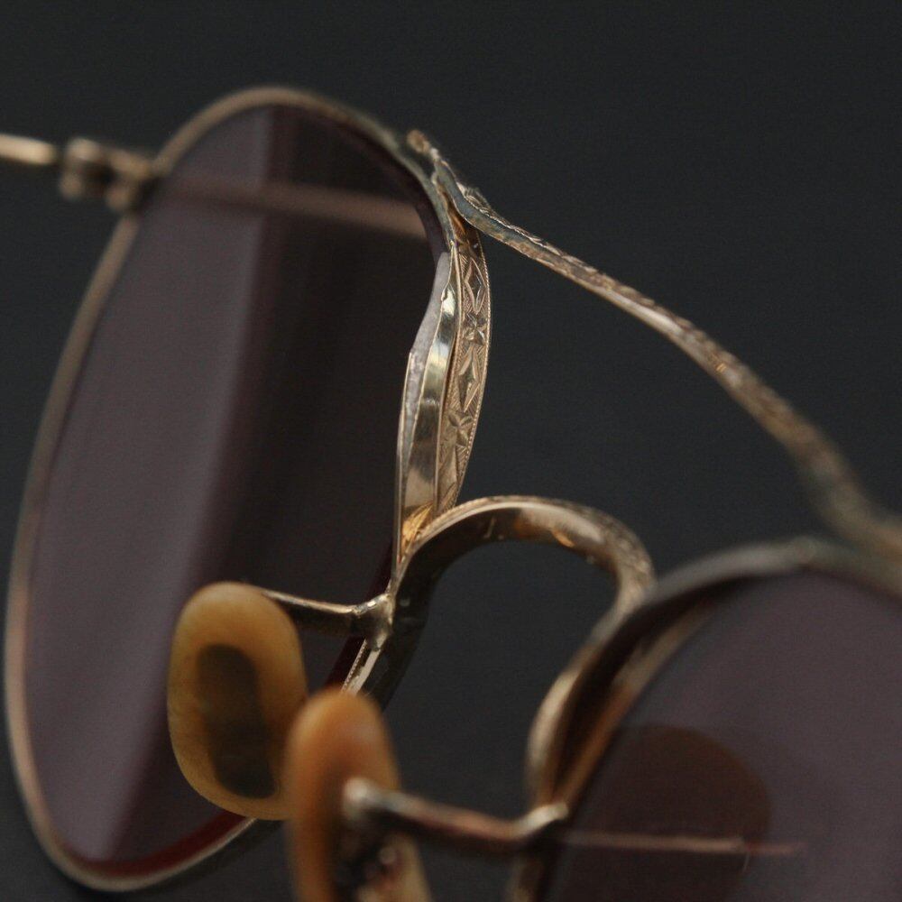 Vintage [Bausch + Lomb] glasses around the 1940s. Named by the three major eyeglass manufacturers in the United States, it is a brand with a history of more than 150 years, but at the end of B & L Ray-Ban, we have not made eyeglasses in modern times and its vintage frame is a rare one Full View type, this A rare top bar (aviator silhouette) and a good size. The beautiful gold-plated work, the body that makes you feel heavy, and the nose are reinforced like AO Sampson, and it is an individual with a minimal silhouette and artistic that will not be found in the safety, aviator, and Ray-Ban after this. We have a new light red UV lens. Appraised at a spectacle store, maintained, and the temple (or rope) can be adjusted in size by bending. (At an optician near you) We have scrutinized the condition, but since it is a vintage item, there are threads and scratches. Please purchase after understanding the characteristics of vintage and antique. All of our eyeglasses are maintained and lens replaced at the optician store g room in Ebisu, Tokyo.