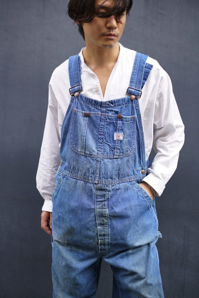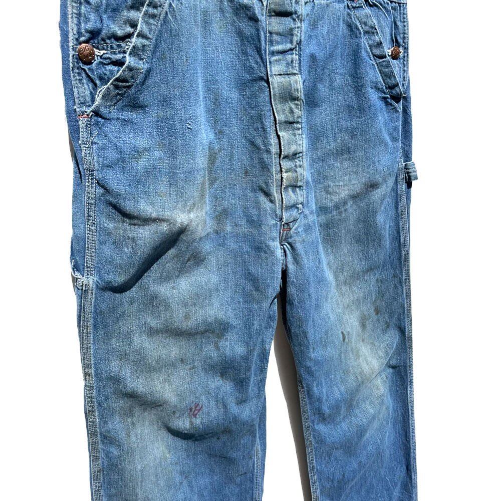 Around the 1970s, it is a BIGMAC denim overall. Realistic denim aging, a light texture that has become softer over time, a moderate amount of indigo that remains, and a edgy appearance unique to vintage combined with scattered paint marks are attractive. ..