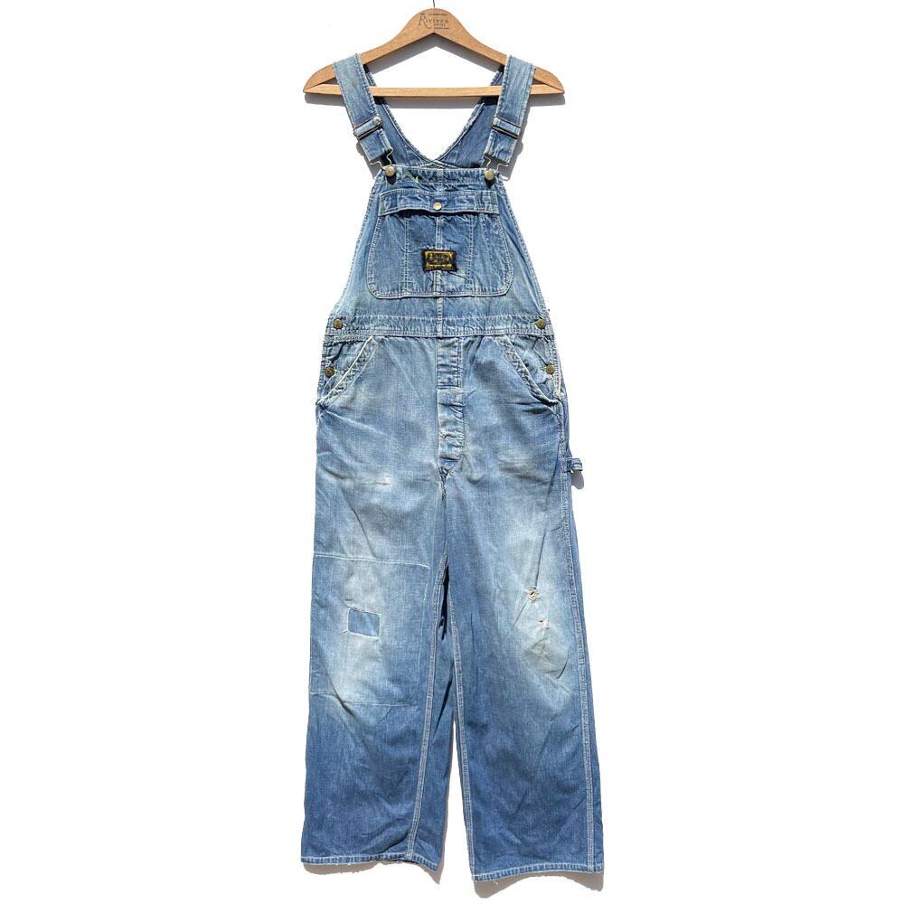 Around the 1960s, it is a denim overall made by WASHINGTON DEE CEE. Realistic denim aging, the fabric has become softer over time and has a light texture, the remaining indigo has a moderate amount of atari, and the repair marks combine to create an edgy appearance unique to vintage. ..