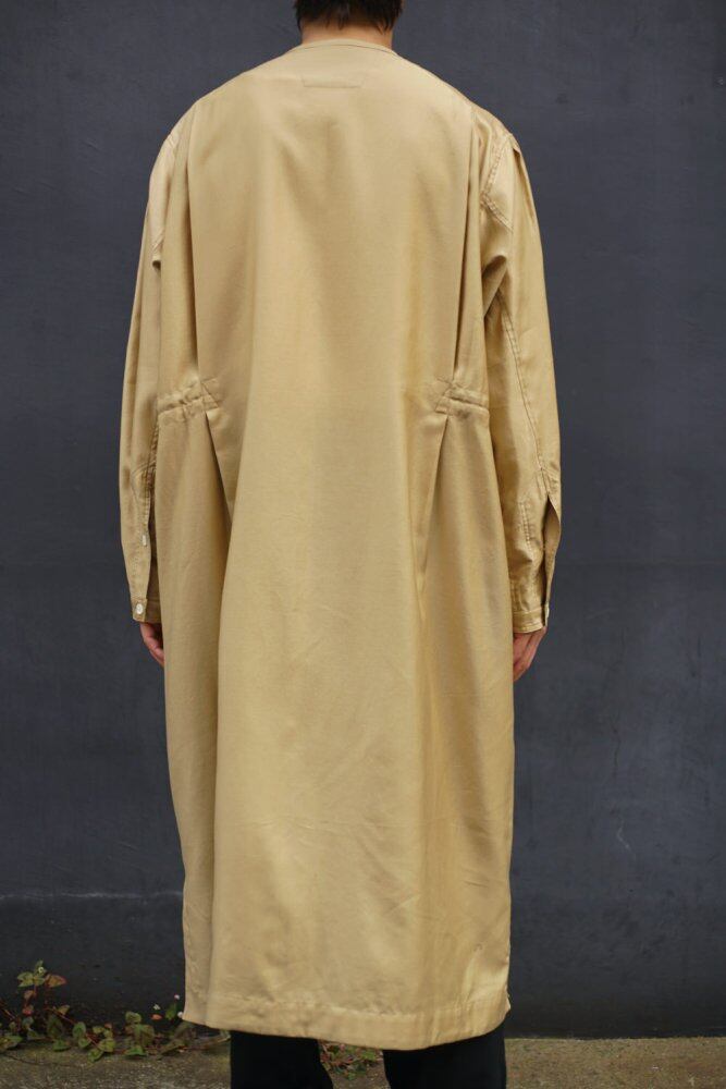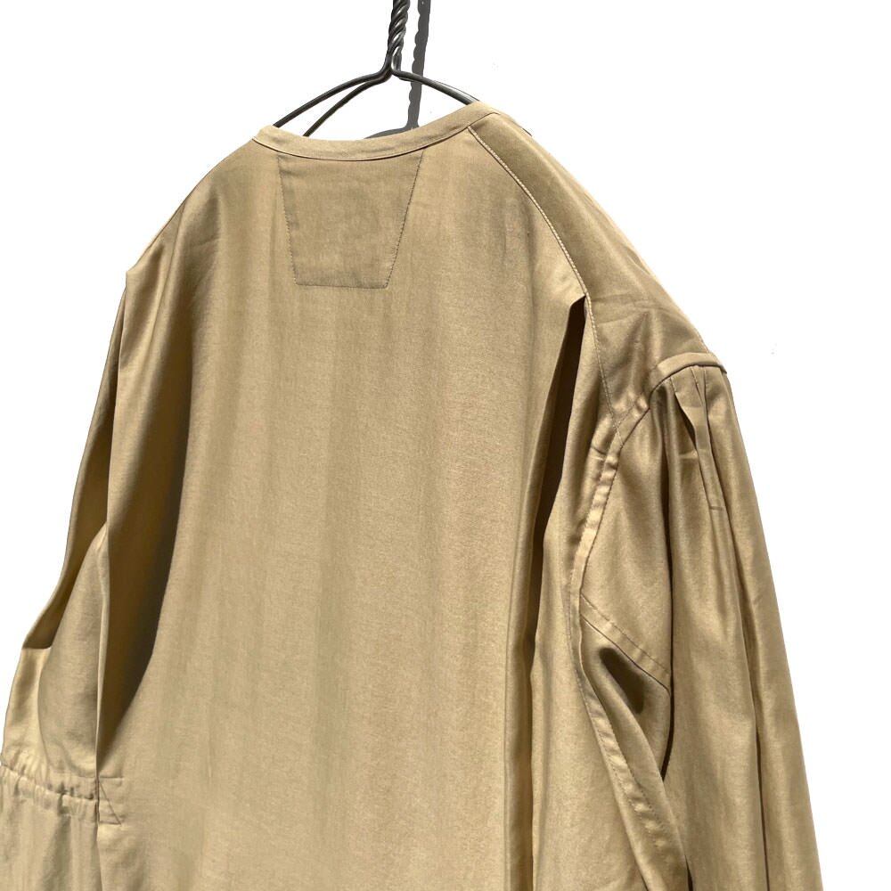 [ALVISTA] 4th Issue Vol 2. A shirt based on an antique blouse from the beginning of 1900, a long-length bespoke pattern at our shop. The silhouette balance that was very sharp and effective like that of ladies at that time has been reconstructed into a modern silhouette balance while the atmosphere of the outline is wide. The two cords from the side to the front body are designed to work with the tack of the back body, and by squeezing it, the waist shape becomes tighter, and the back body swells. A jacket-like pattern design with a higher sleeve ridge than a general shirt and a firm eye on the front swing of the sleeve. By taking a tack on the sleeve ridges and making the cuffs open and squeezed into a unique shape, the sleeve shape gives you an appropriate sense of volume. The button uses the Honkai button made from Takase shellfish. One wash finish.