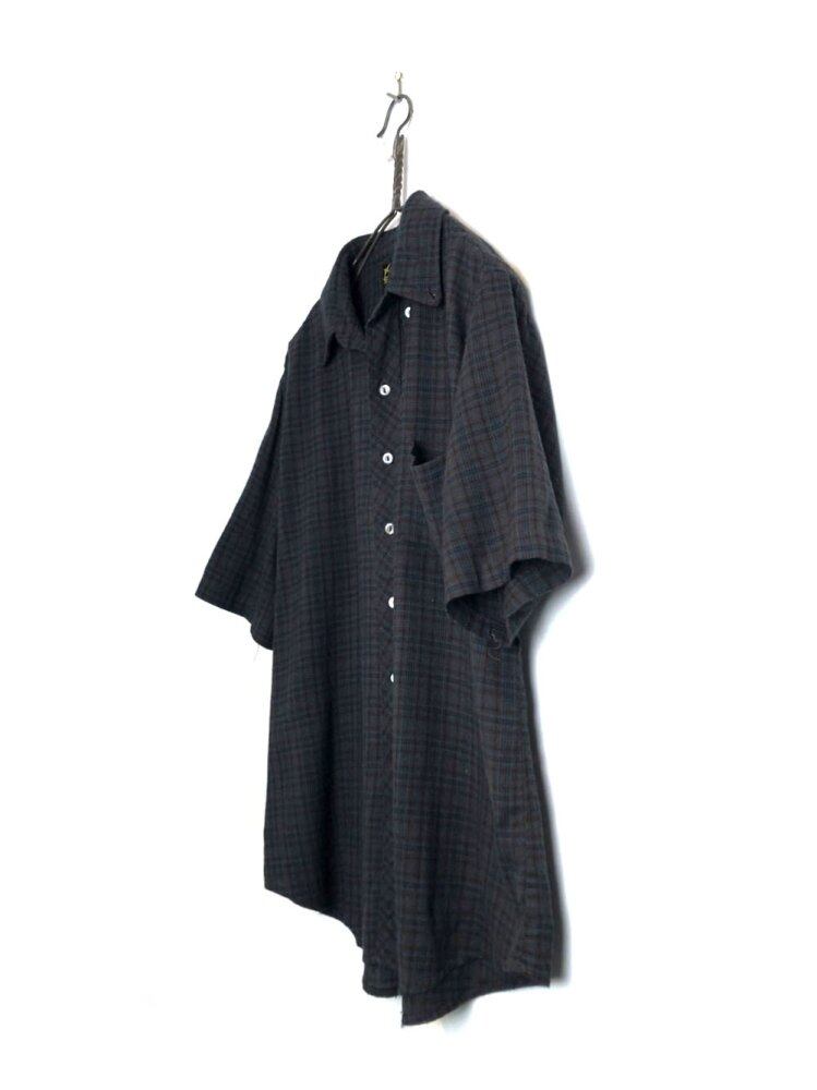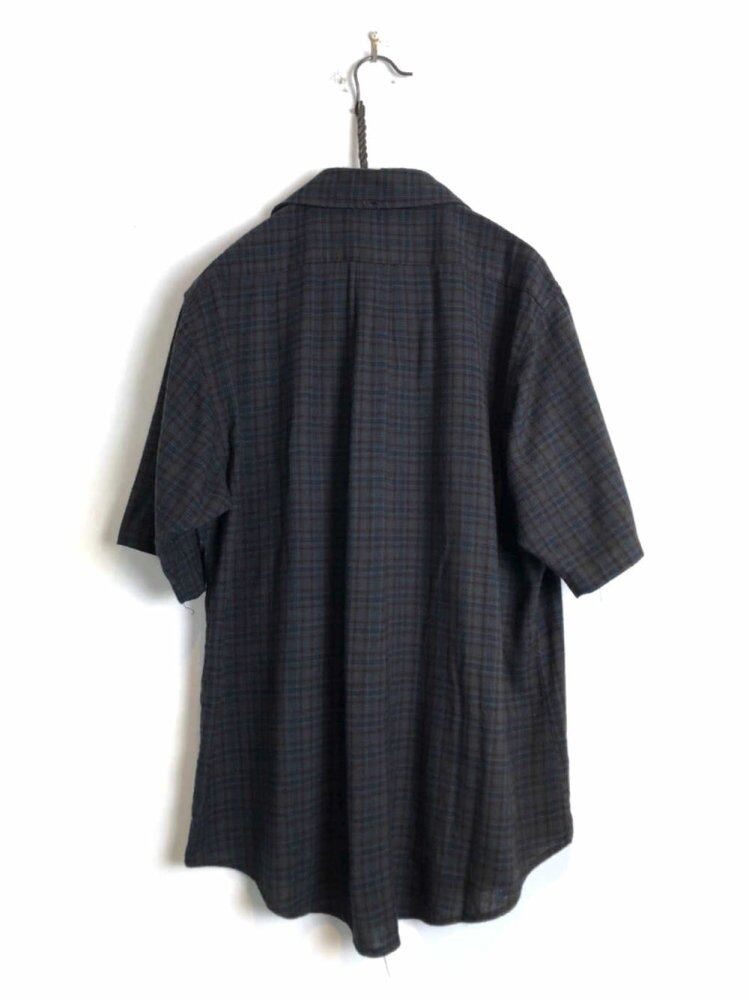 60s short sleeve B / D shirt Dark blue x brown plaid is a nice shade of rayon x polyester fabric that is soft and smooth to the touch and has a nice silhouette with a moderate amount of space.