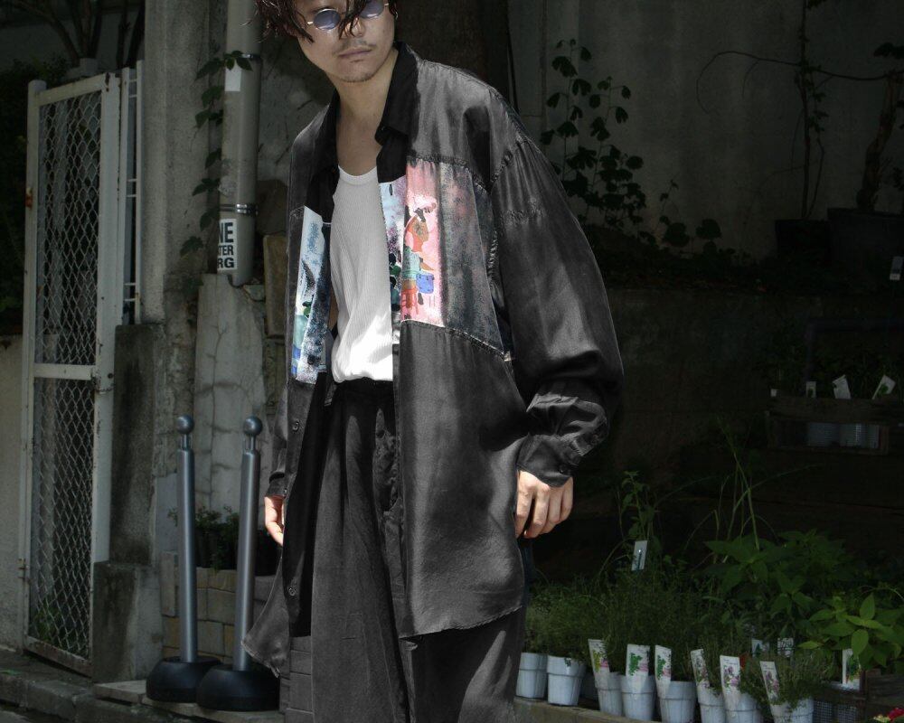 It is a silk shirt of GOOUCH around the 1990s. Alan Goouch, who was active as a photographer, immigrated from London around the 1960s and started in Canada. A brand with many art prints inspired by traveling around the world, it has a better sense than other brands and makes the fabric feel high quality. High-quality fabrics that give you the lightness and smooth drape that are peculiar to silk are used, and the design that shines on the black body with the specifications that the art print fabric of the jazz motif, which is especially rare in this age, is switched regardless of this brand. XL size and relaxed silhouette. It doesnt bother me when I wear it, but there are traces of silk shrinkage on the left sleeve, and it is in good condition subjectively. Since it is an old product, it rarely deteriorates over time. Please check the photo and purchase after acknowledging the characteristics of vintage.