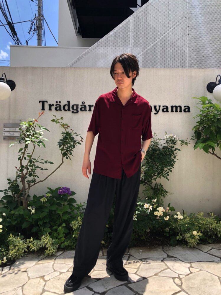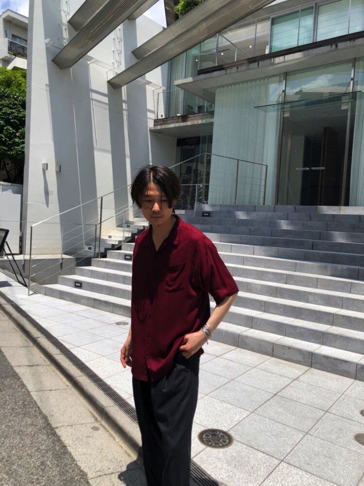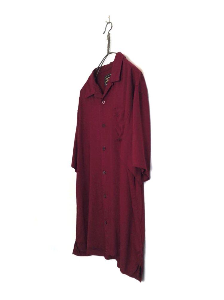 90s short-sleeved rayon shirt The sensual Bordeaux color, the silky texture of the rayon, and the comfortable and comfortable one.