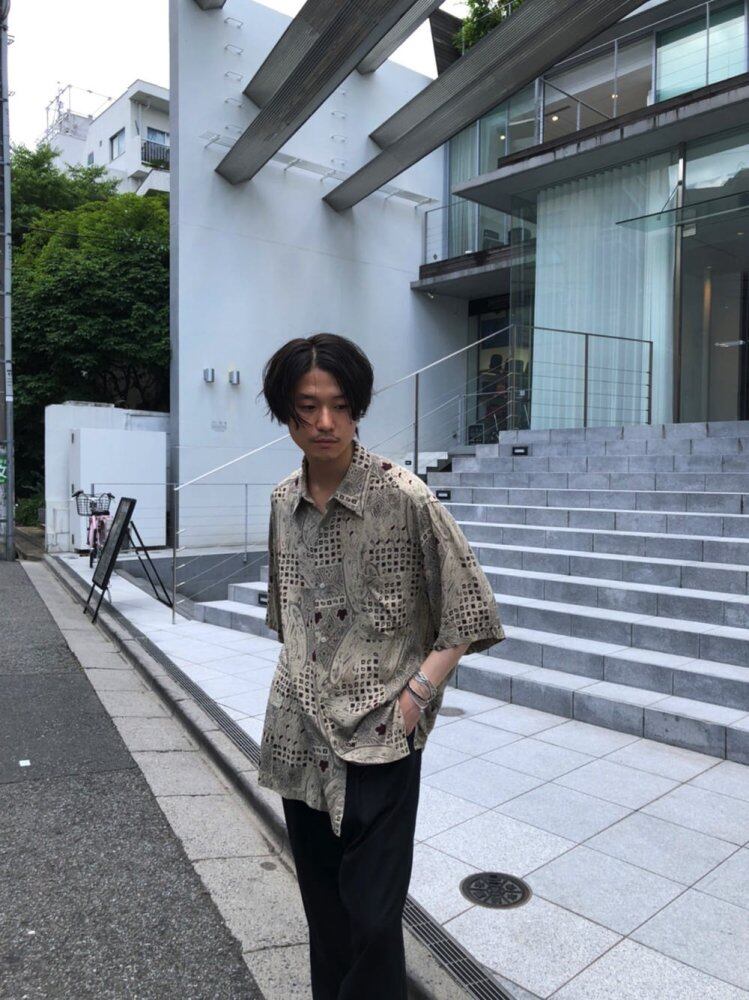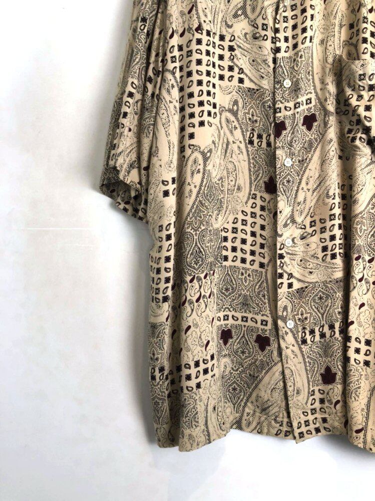 90s short sleeve rayon shirt A piece of beige with a calm atmosphere printed with paisley patterns of various sizes.