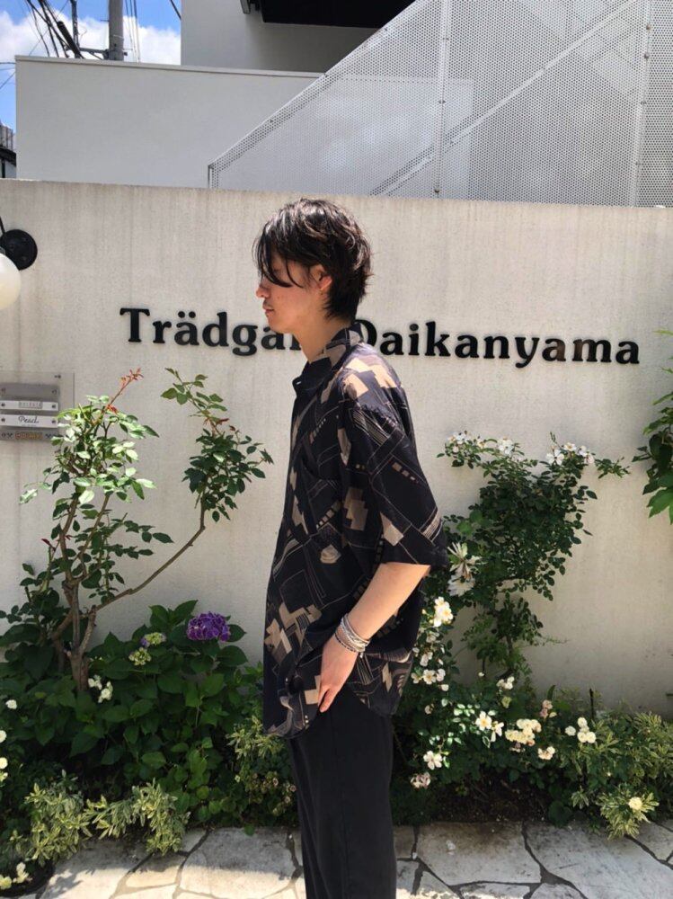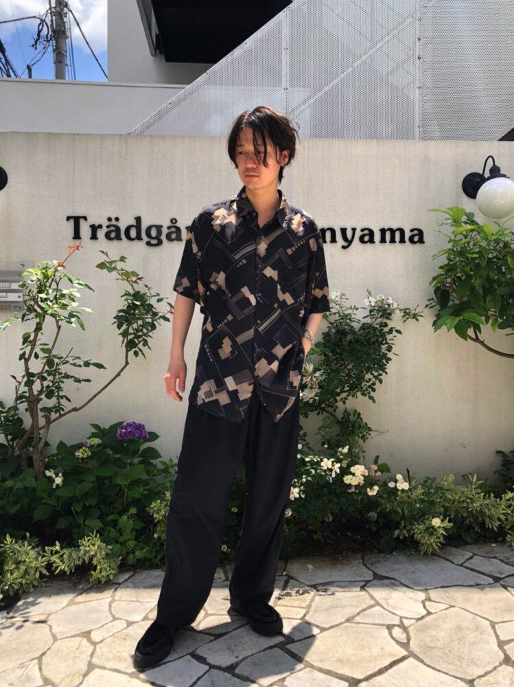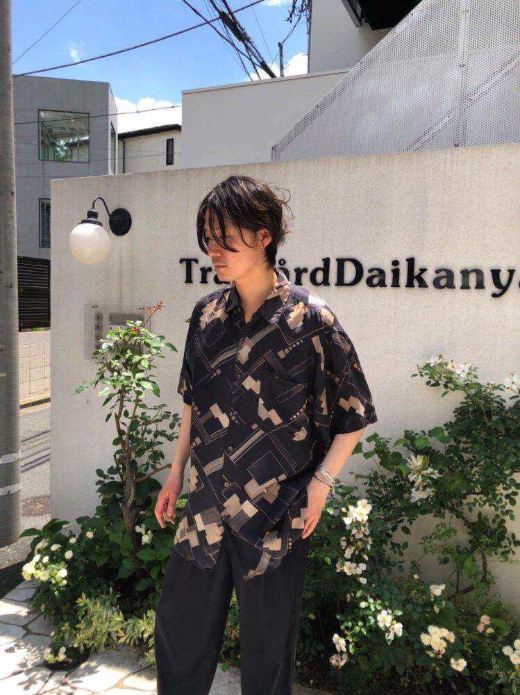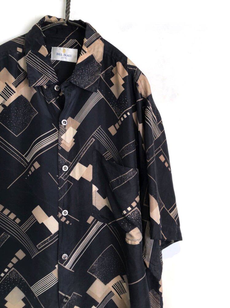 90s short sleeve silk shirt Gray x beige geometric art pattern is a cool image Smooth and smooth 100% silk satin fabric that is comfortable to the touch and comfortable to wear. Sheet