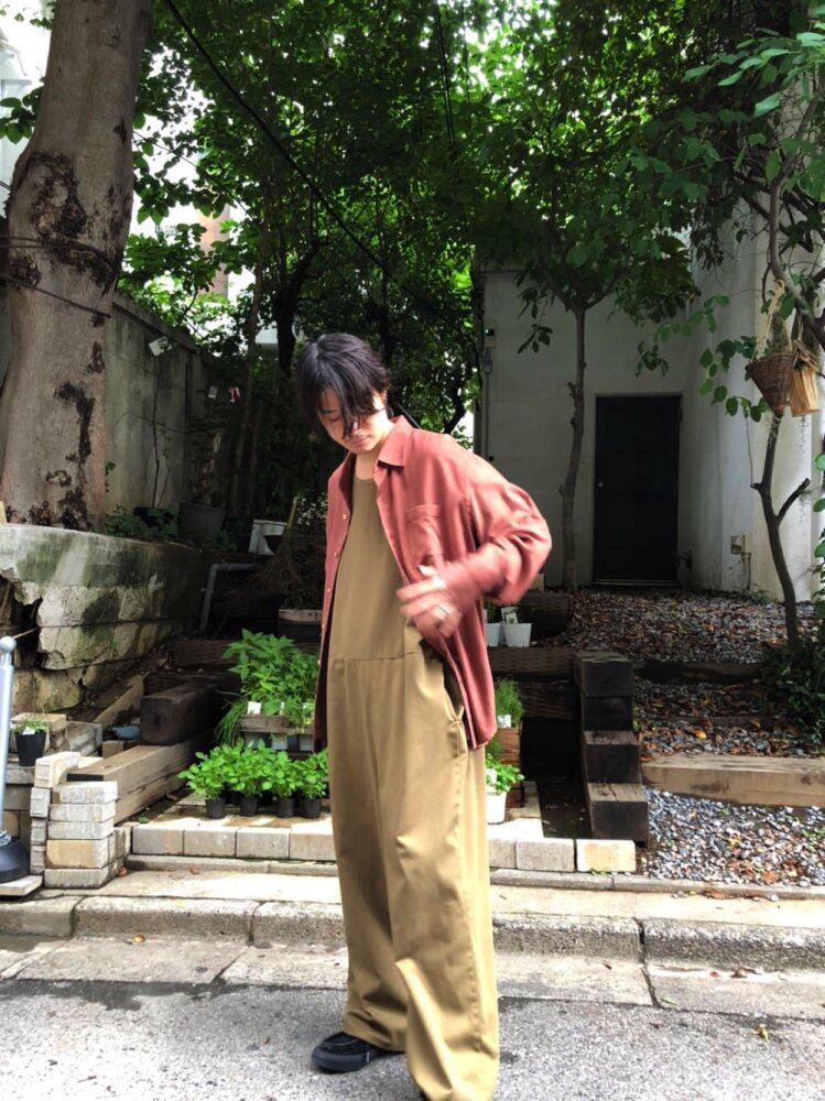 90s long-sleeved shirt A terracotta color with an adult-like atmosphere and a soft, silky and smooth fabric feeling of silk and cotton. An over-silhouette shirt with a moderately spacious size and a relaxed feeling.