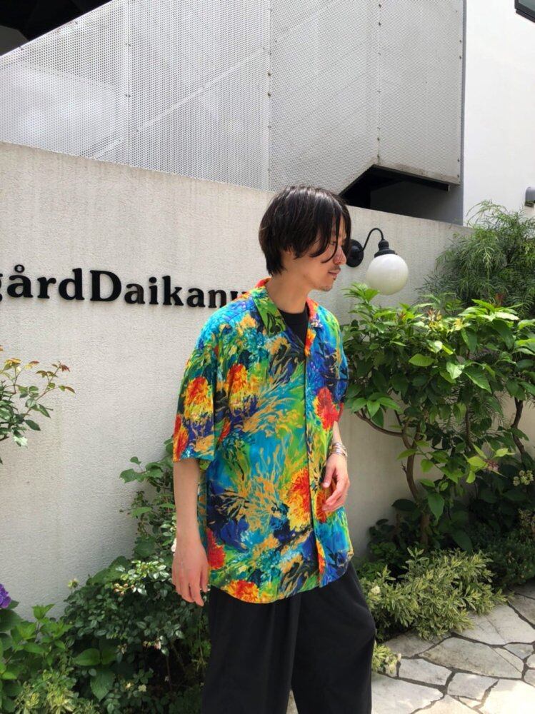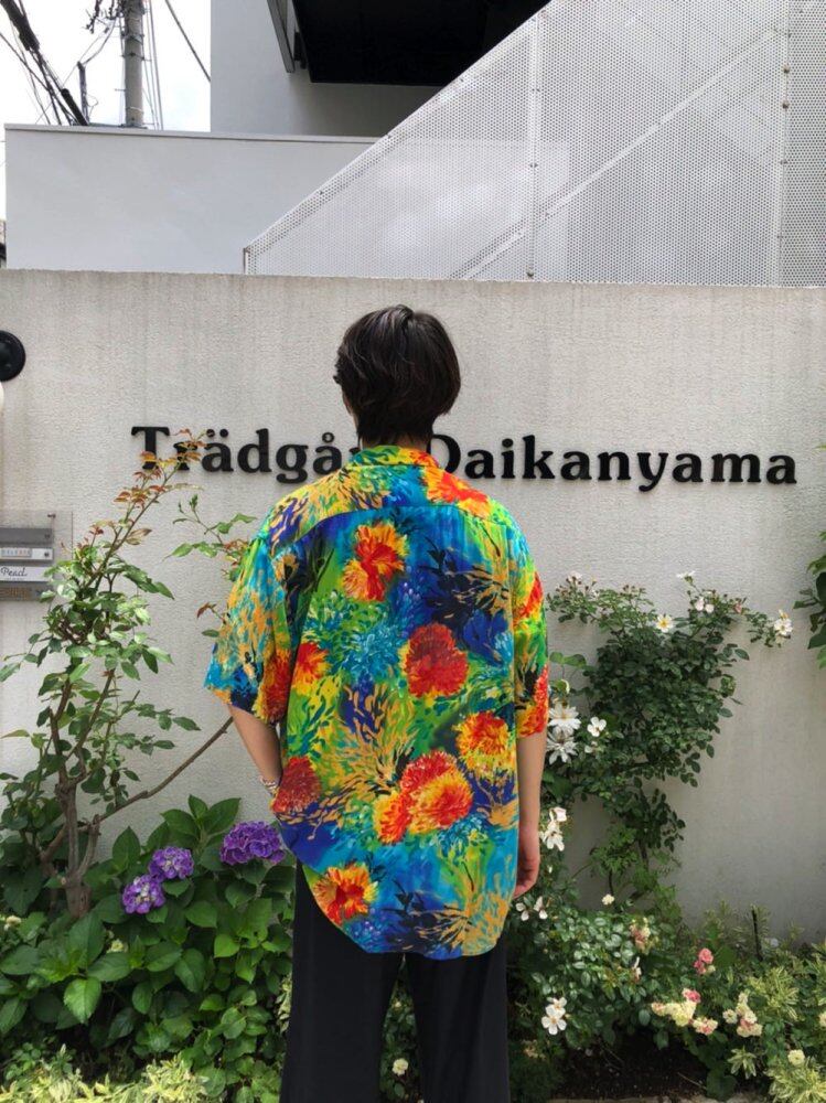 80s short-sleeved rayon shirt The abstract, brilliantly colored flower pattern is perfect for the summer atmosphere. 100% rayon smooth fabric that creates a light drape that flutters in the wind. A well-balanced silhouette with just the right amount of sway.