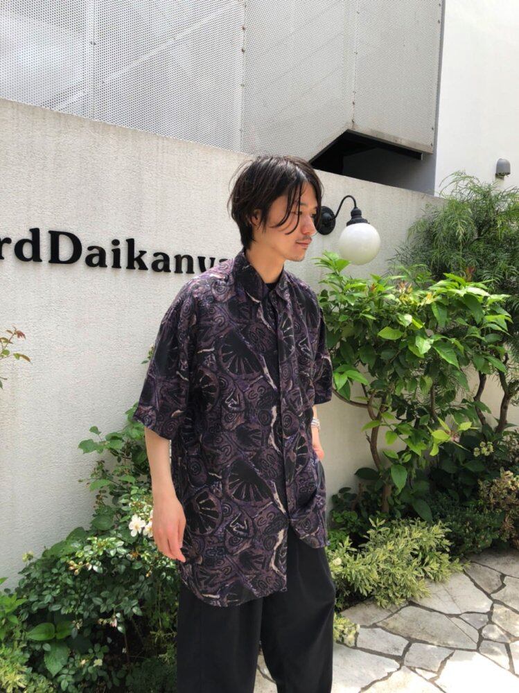 90s short sleeve silk shirt Dark black x purple ethnic art pattern is a nice atmosphere. Light and smooth 100% silk satin fabric, soft and comfortable to wear. A voluminous over-silhouette piece