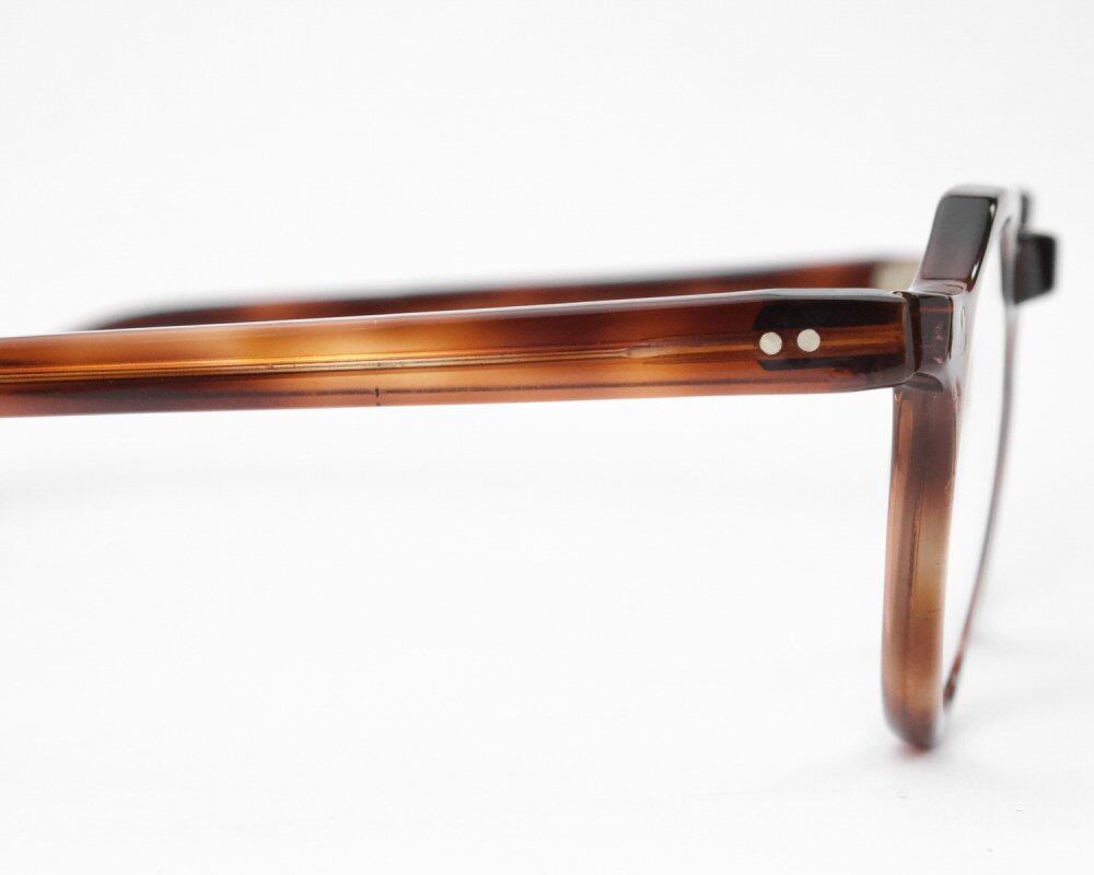 French-made vintage eyeglasses that are carefully made one by one by craftsmen. Since high-quality celluloid is cut out by hand, there are individual differences and it makes you feel warmth, and it is characterized by its freshness that is glossy like starch syrup. It is a very rare original frame in the French vintage with many re-products in recent years. This is a crown punt style with two corners on the top of the frame. It is a rare frame that has become popular in recent years due to its familiar design along the cocoon line. Brown amber that is hard to meet even though there are many bright amber colors. It is a valuable large size among French vintages with many small frames. We have added a new clear UV lens. Appraised at a spectacle store, maintained, and the temple (or rope) can be adjusted in size by bending. (At an optician near you) We have scrutinized the condition, but since it is a vintage item, there are threads and scratches. Please purchase after understanding the characteristics of vintage and antique. All of our eyeglasses are maintained and lens replaced at the optician store g room in Ebisu, Tokyo.