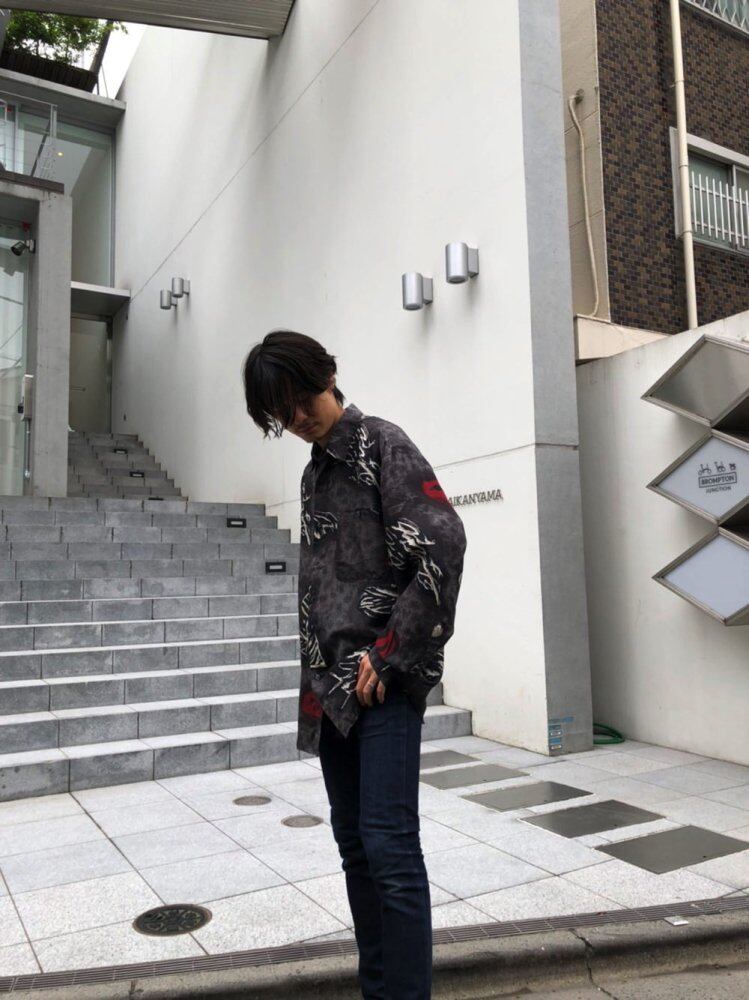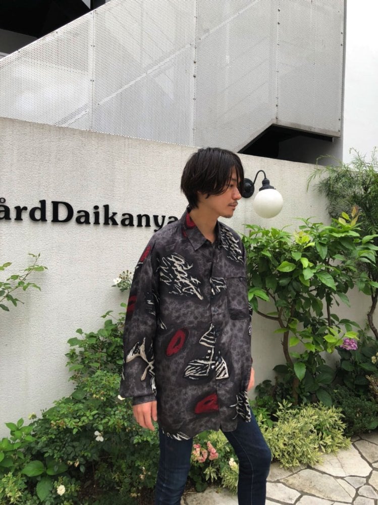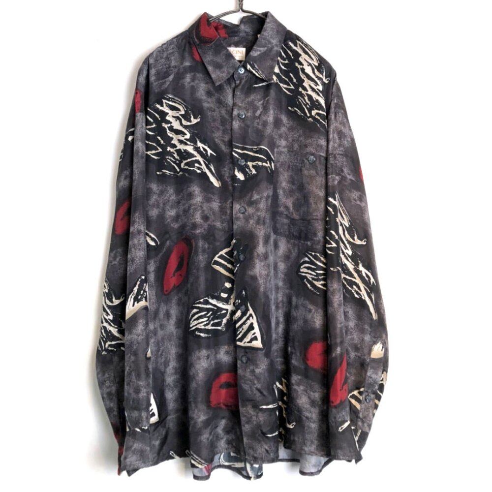 90s short sleeve shirt A cool art pattern shirt with black and gray as the base color and white and red.