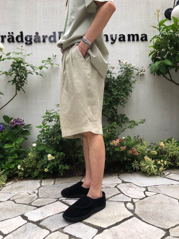 A comfortable fabric that is perfect for the soft and smooth summer of 100% linen. The waist size is 34 inches, and it is easy to match with a gentle tapered silhouette. Sage gray color that feels mature and refreshing.