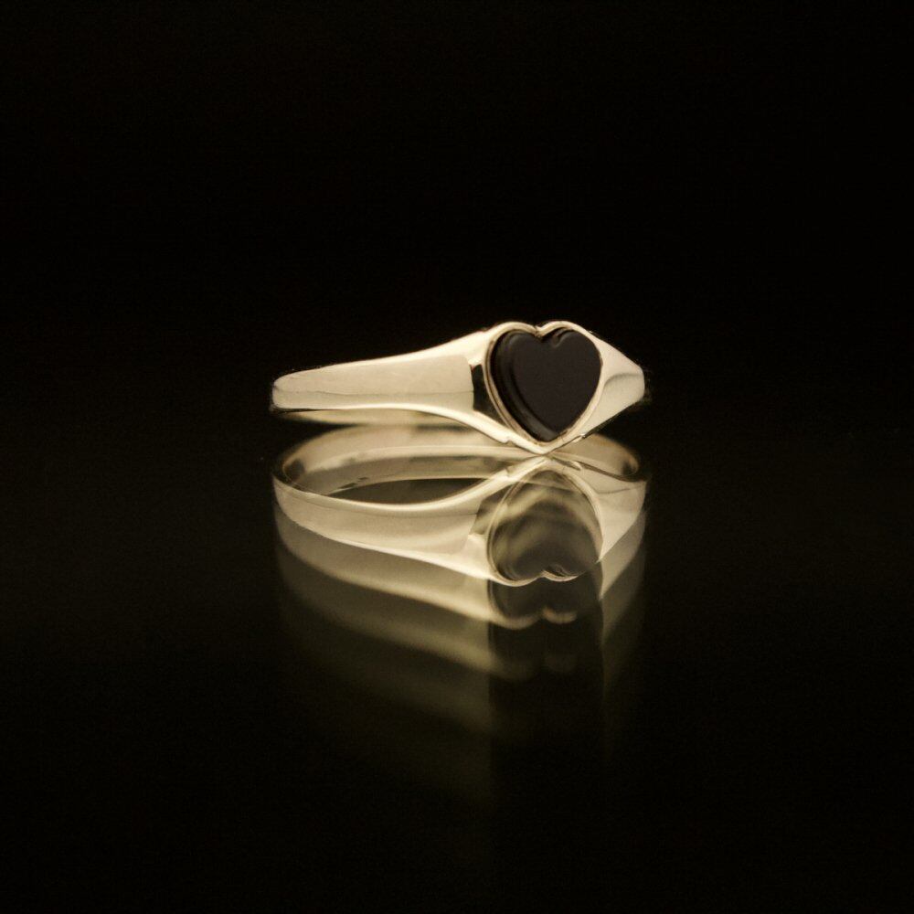 British made signet ring. It is the only ring that is allowed to be worn among British gentlemen who wear good things that can be used for a long time with as little waste as possible. It is a heart motif that can be seen in baby rings, eternity rings, claddagh rings, etc., but this is a precious one with onyx in the center. The silhouette is also a simple signet ring type and it seems that both men and women can wear it. 375-9ct Gold, Hallmark, 1989 Birmingham Office. Please check the condition in the photo and purchase after acknowledging the characteristics of vinteg.