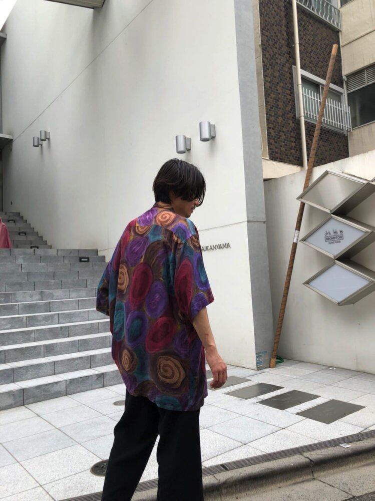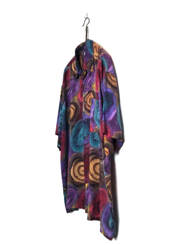 90s Pierre Cardins short sleeve rayon shirt Junji Itos cool art pattern shirt with a mysterious and disturbing atmosphere reminiscent of Uzumaki The material is 100% rayon fabric that falls softly and smoothly. It is a comfortable one