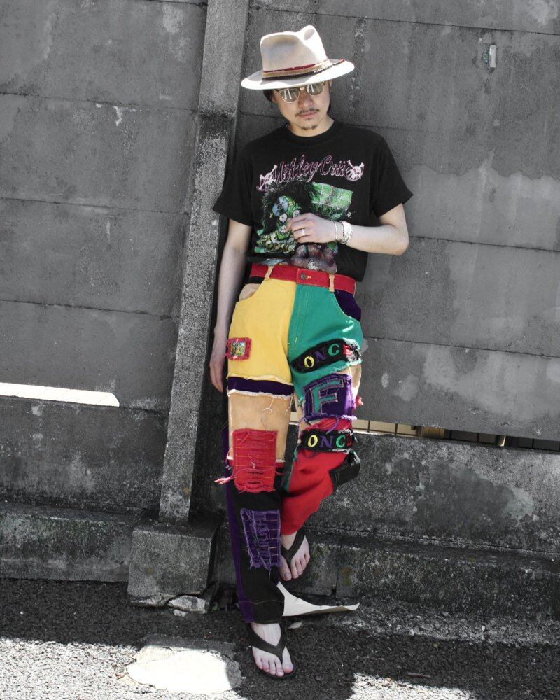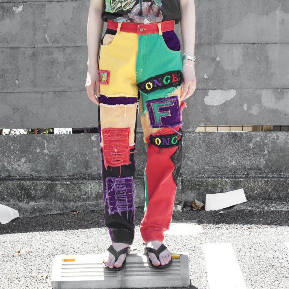 Probably made by a South American brand, cotton denim of various colors is pasted together and the design has a presence like the 90s. It also features a slender silhouette with a beautiful taper that makes it look neat to the design. Its hard to find second-hand clothes that have been designed so far. It is in good condition subjectively as used clothing. Since it is old, it rarely deteriorates over time. Please be aware of this after checking the photos.