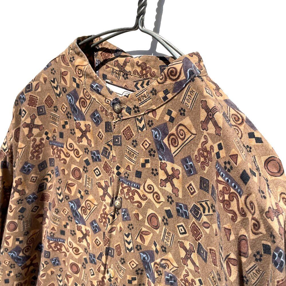 An art print rayon shirt with a moist and soft texture.