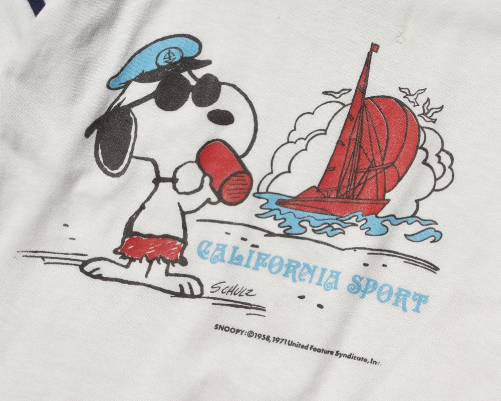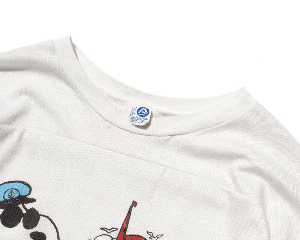 Casual type American football jersey around the 1970s. Joe Cool type Snoopy design with original copyright, vintage font and print design. ARTEXs 50/50 white body, XL size, has a relaxed silhouette that is rare in this age group. It is aged as a whole and has a more vintage atmosphere. Since it is an old product, it rarely deteriorates over time. Please check the photos and understand the characteristics of Vintage before purchasing.