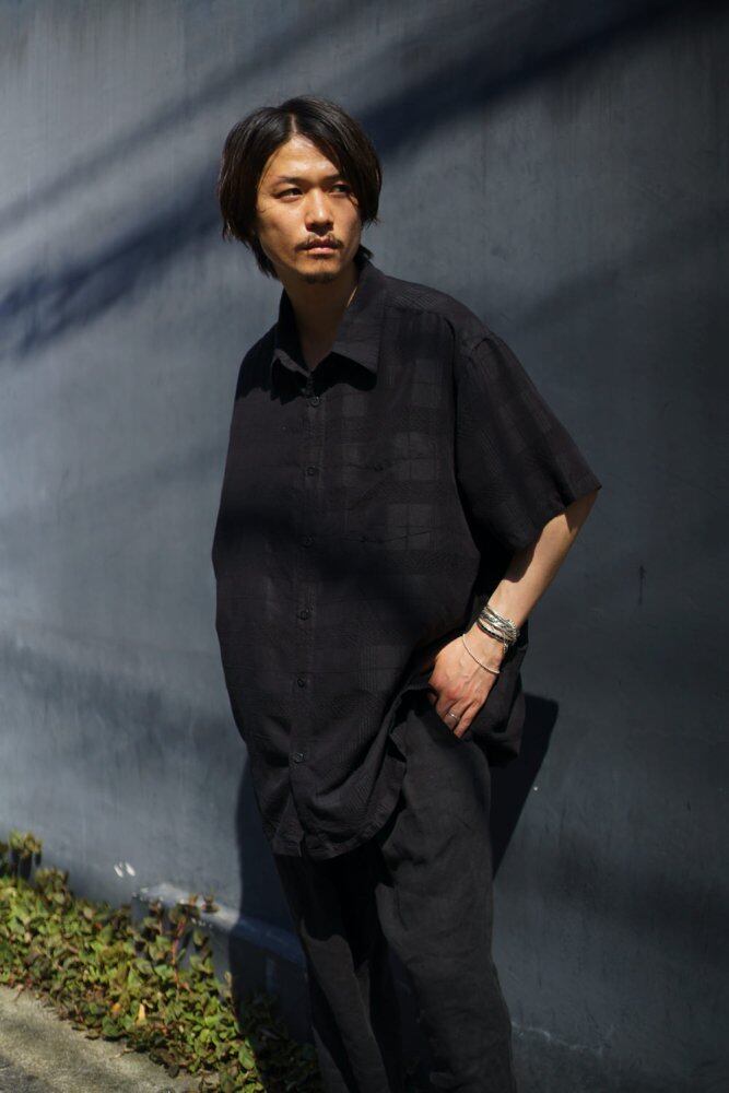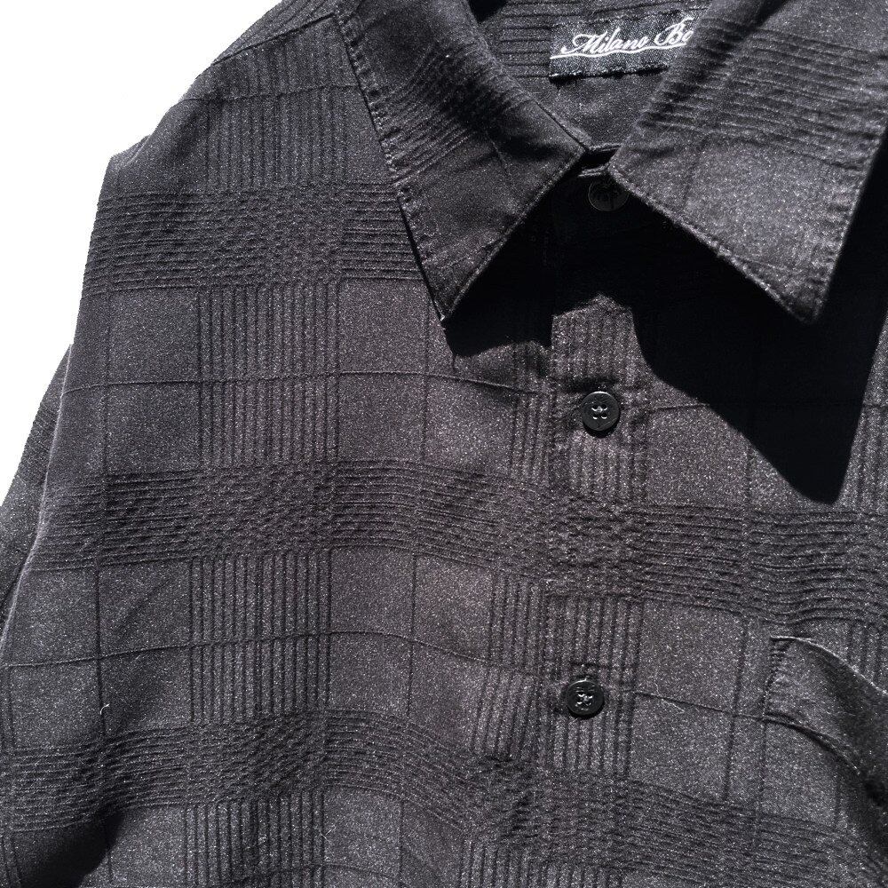 A plaid woven pattern that looks like a box shirt from the 1950s, but also has a texture that makes it look elegant.