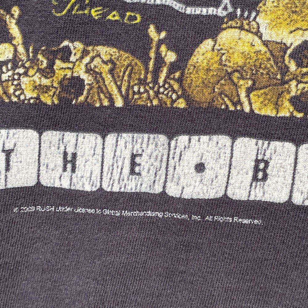 A promotional T-shirt for the 1991 release album Roll the Bones, designed by American illustrator PUSHEAD, who works on numerous hardcore and metal jacket art.