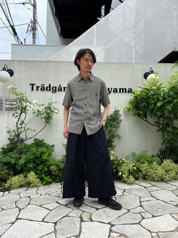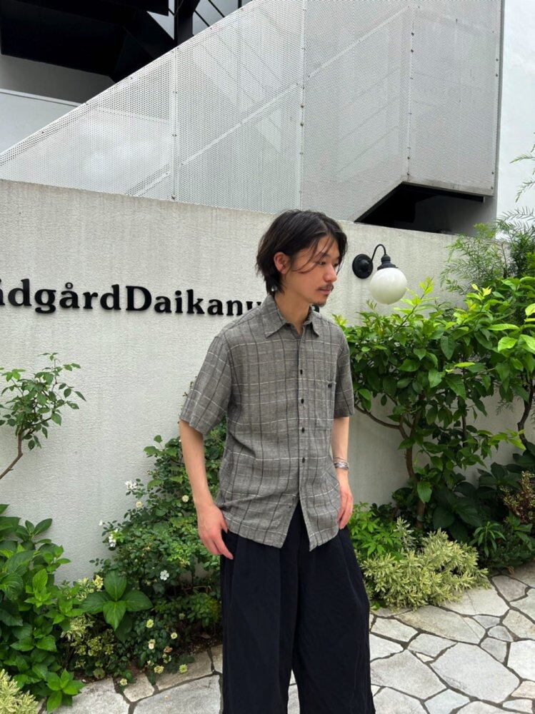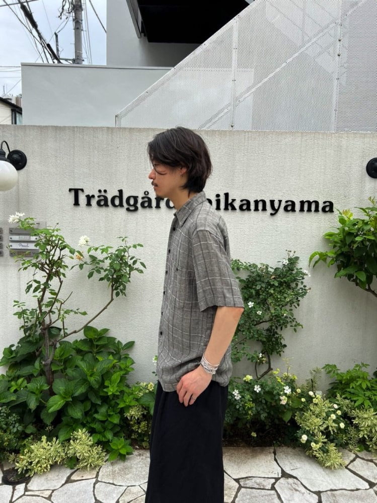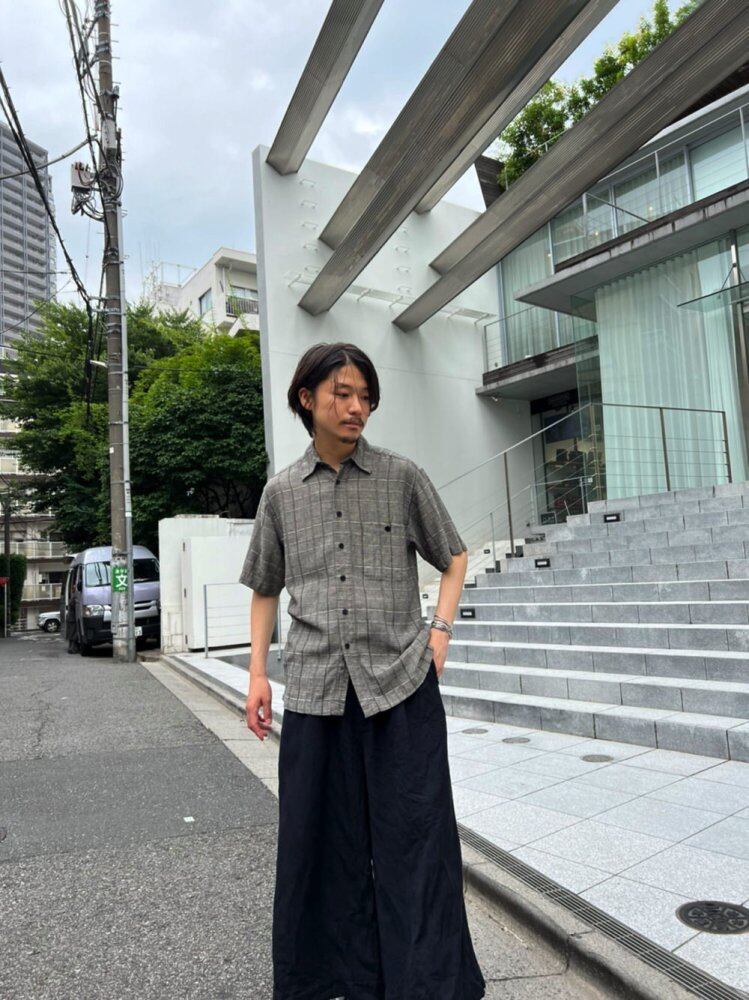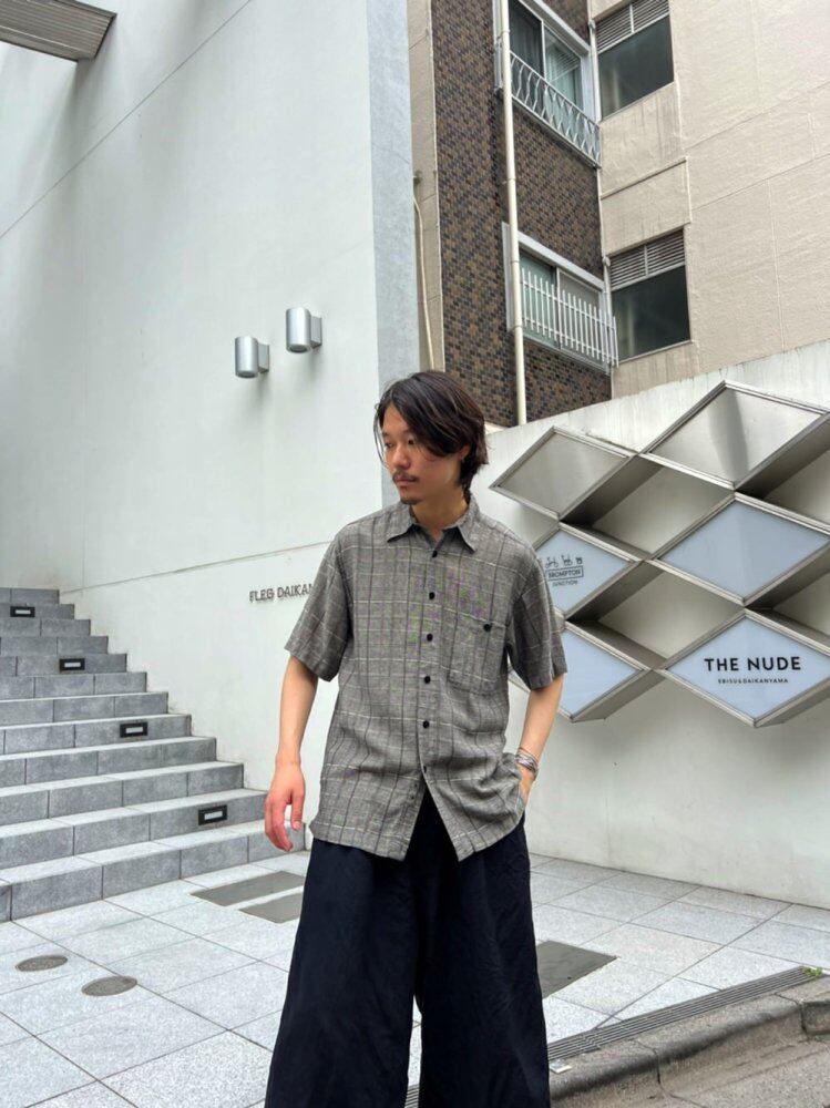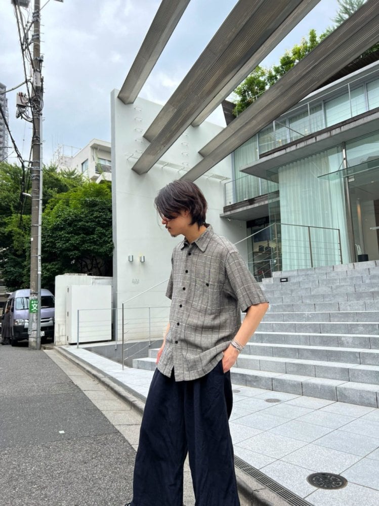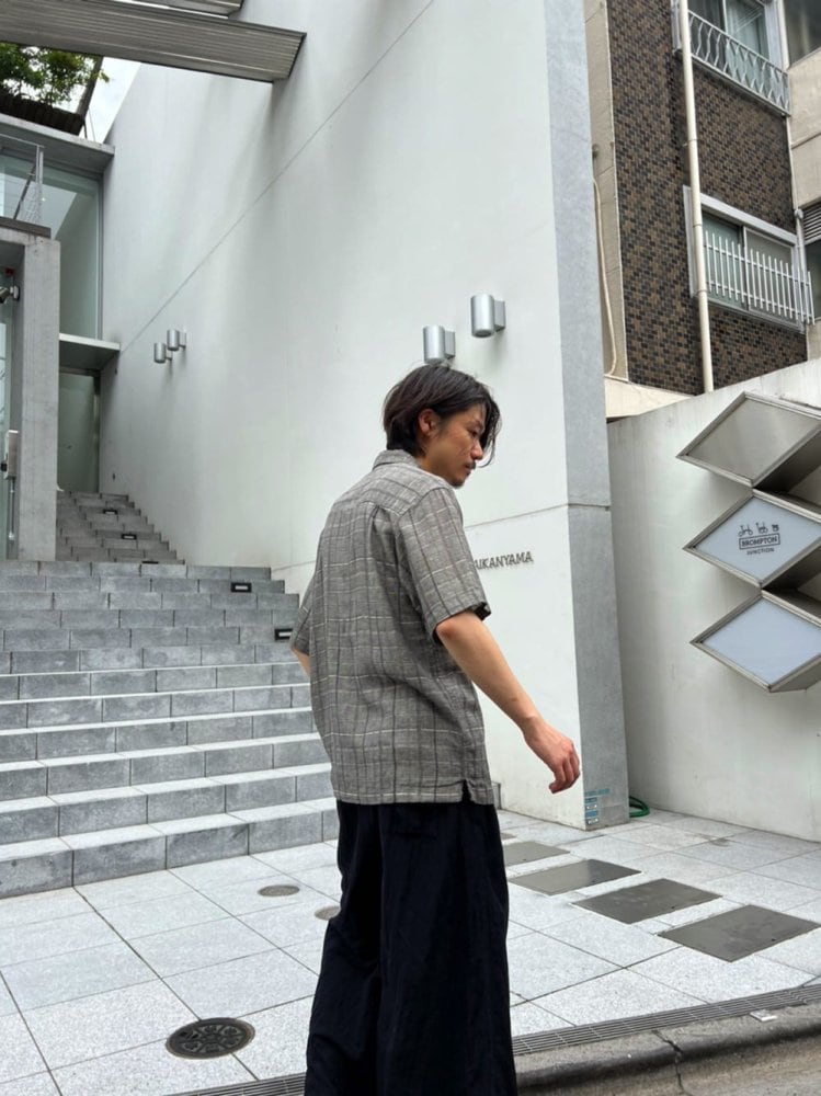 90s short sleeve shirt Linen x rayon fluffy texture, dry touch blend fabric ideal for summer The check pattern with a gray color woven pattern is also one of the astringent and mature atmosphere. One piece with a silhouette