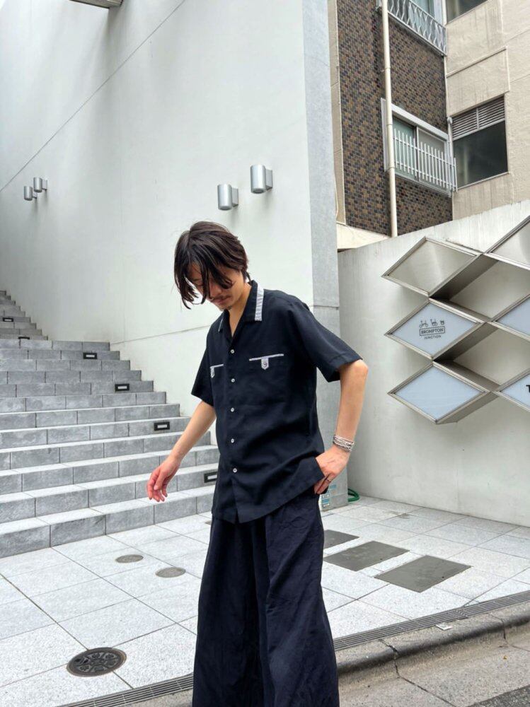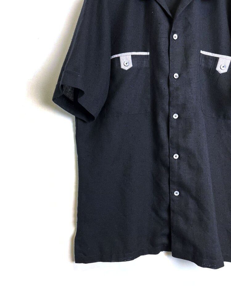 80s short-sleeved shirt Black body, one of the cool two-tone colors piped with white striped fabric on the collar and pockets. Fabric with a smooth texture