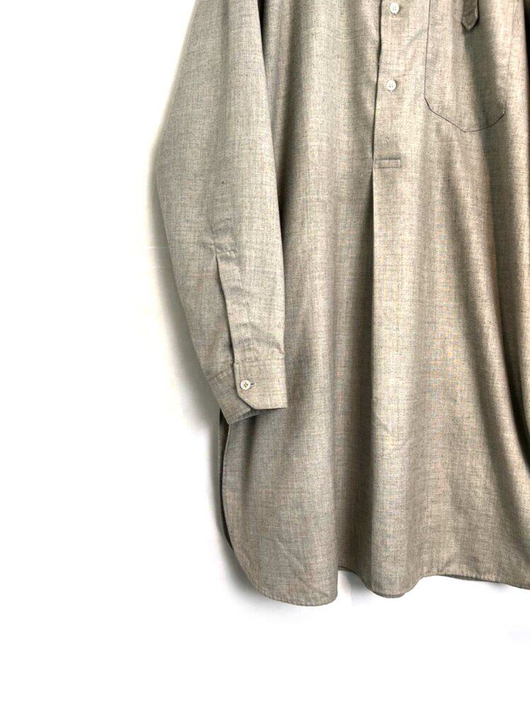 80s pullover long shirt The light gray color with a refreshing impression is a mature color. The long silhouette with a moderate amount of space makes it a great item to wear as a layered item from autumn. Cotton x polyester material with a smooth texture.