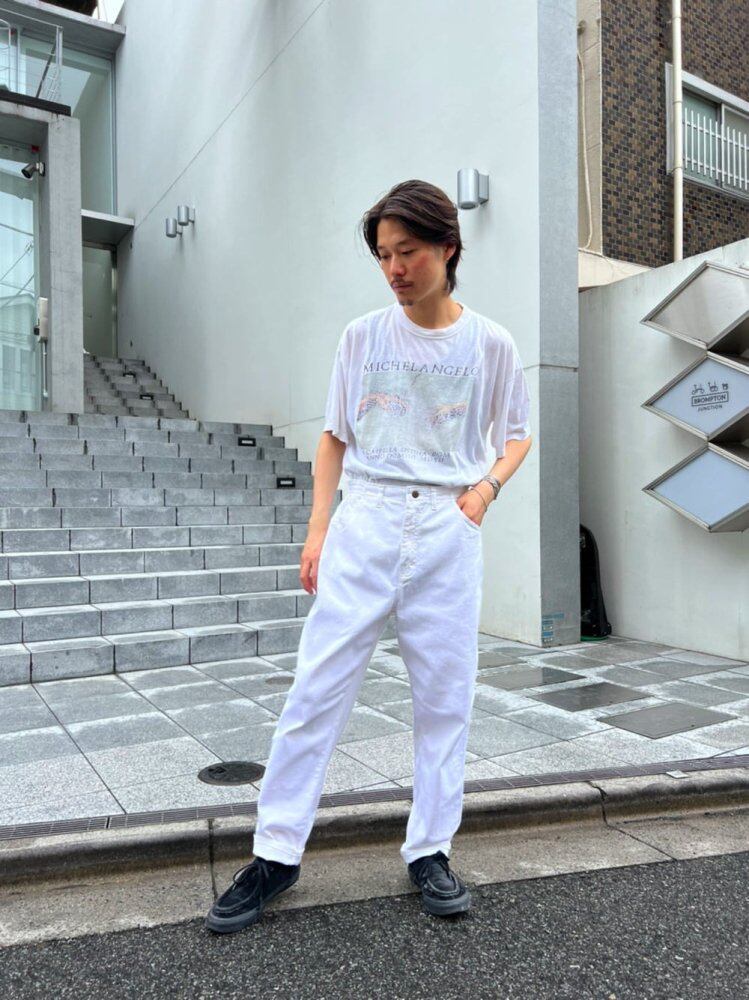 90s Lee Denim Pants Soft and comfortable white denim pants with stretch. A gentle tapered silhouette with a refreshing white color and a moderately roomy waist size.