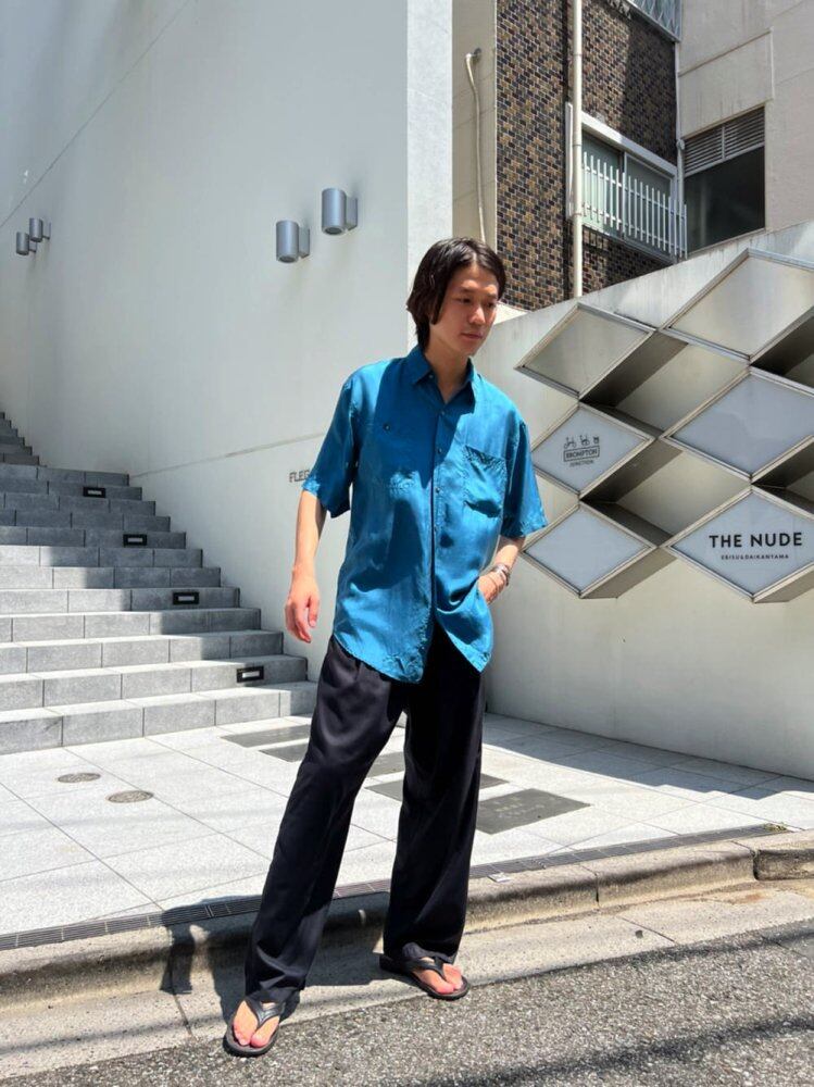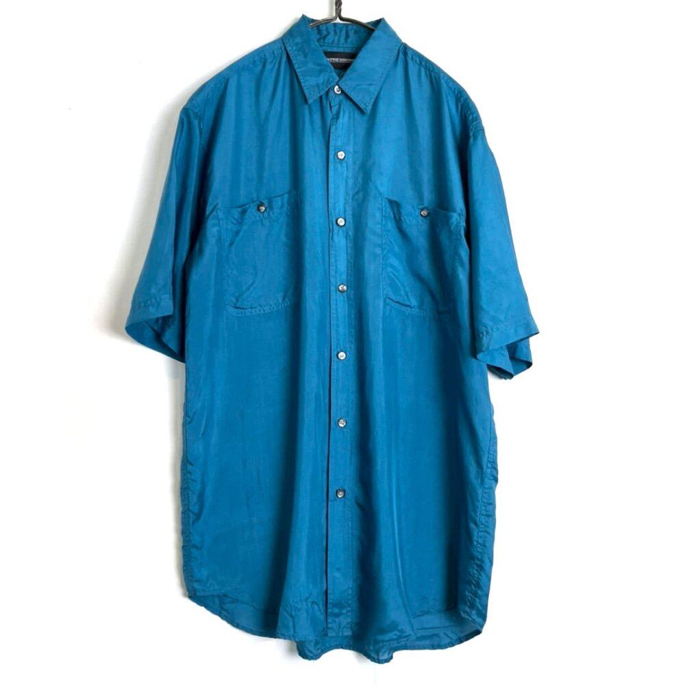 Short-sleeved silk shirt from the 90s Cool one piece with good quality and bright blue color