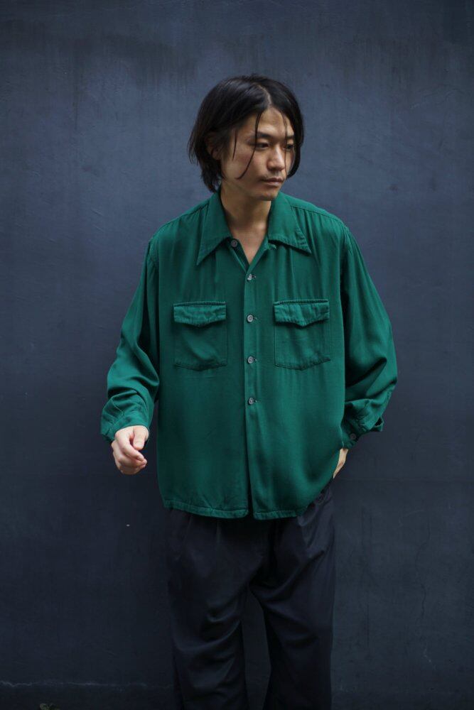 1940s rayon gabardine open collar shirt made by Sportsman.