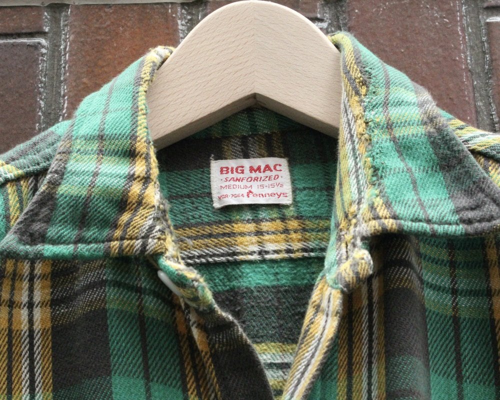 1960s cotton flannel shirt. The 100% cotton fabric, which is rare in recent years, has been aged to give it a soft and atmospheric look. The check pattern with American-like coloring gives it an impressive appearance. Clean silhouette. Quality: Cotton Color: Plaid SIZE: 15 1/2 M [Size] Shoulder Width: 46cm Width: 59cm Sleeve Length: 58cm Length: 76cm [Model Size] Height: 169cm Shoulder Width: 44cm Because it is an old item, there is rare deterioration over time. We try to make the product photos as close to the actual color as possible, but the color may differ from the actual product depending on your monitor settings, room lighting, etc. Please check the photos and understand the vintage characteristics before purchasing. ※Please refer to here for the measuring method.