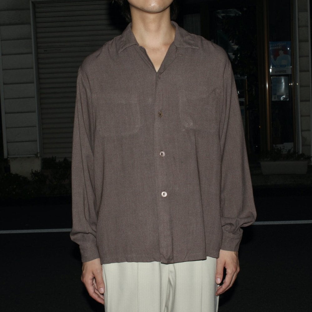 1960s open collar shirt. The rayon gabardine fabric, which is rare in recent years, has a unique texture with a medium thickness and a thick texture. The deep brown color gives it a vintage look with astringency. Although it is a size M, it has a wide body and a moderately roomy silhouette. Quality: Rayon Gabardine Color: Brown SIZE: 15 1/2 [Size] Shoulder Width: 44cm Width: 61cm Sleeve Length: 61cm Length: 70cm [Model Size] Height: 175cm Shoulder Width: 43cm B (Chest): 85cm W (Waist): 71cm Since it is an old item, it rarely deteriorates over time. We try to make the product photos as close to the actual color as possible, but the color may differ from the actual product depending on your monitor settings, room lighting, etc. Please check the photos and understand the vintage characteristics before purchasing. ※Please refer to here for the measuring method.