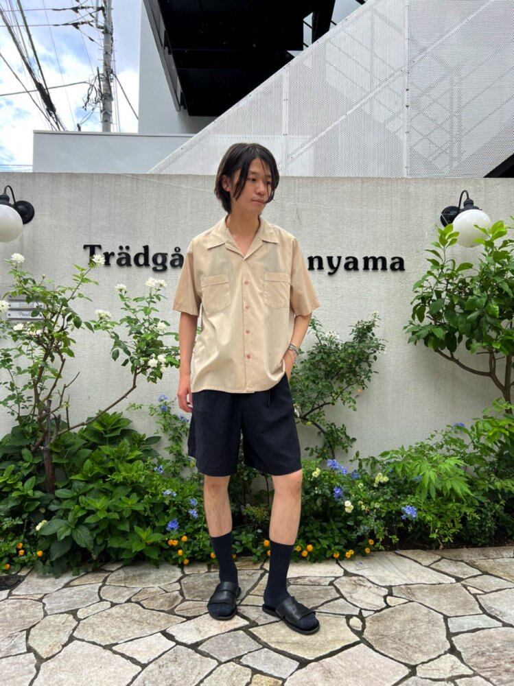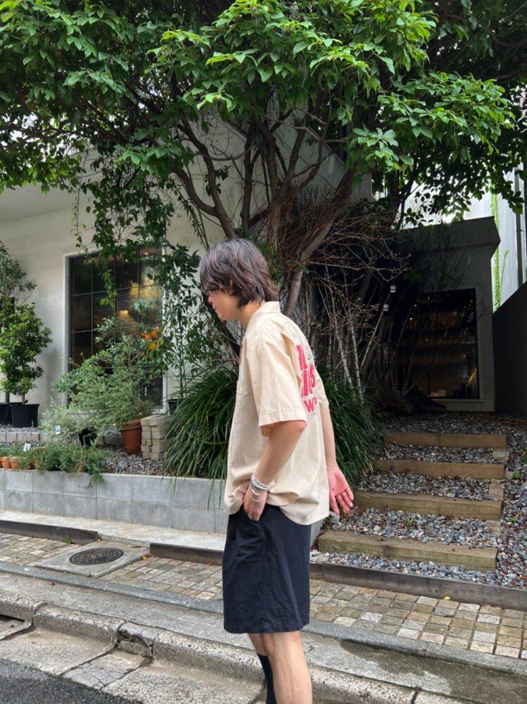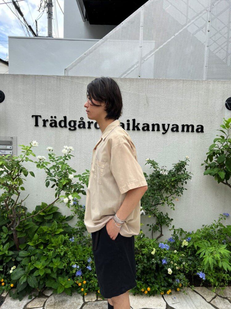 Short-sleeved shirt from the 70s A vintage shirt with a deep, earthy atmosphere with a hand print.
