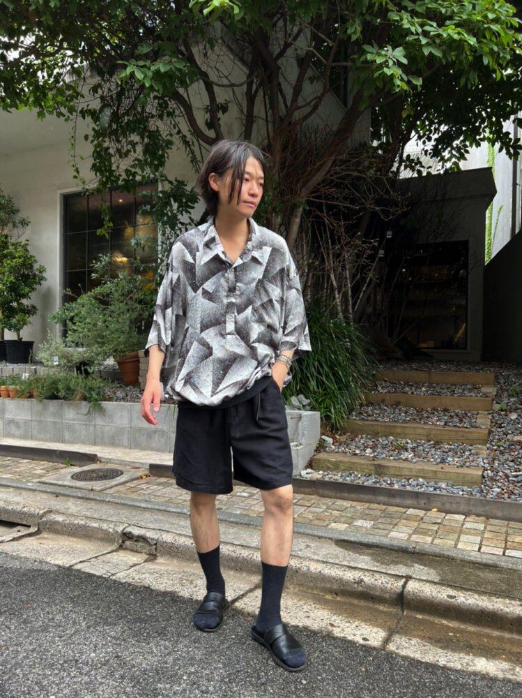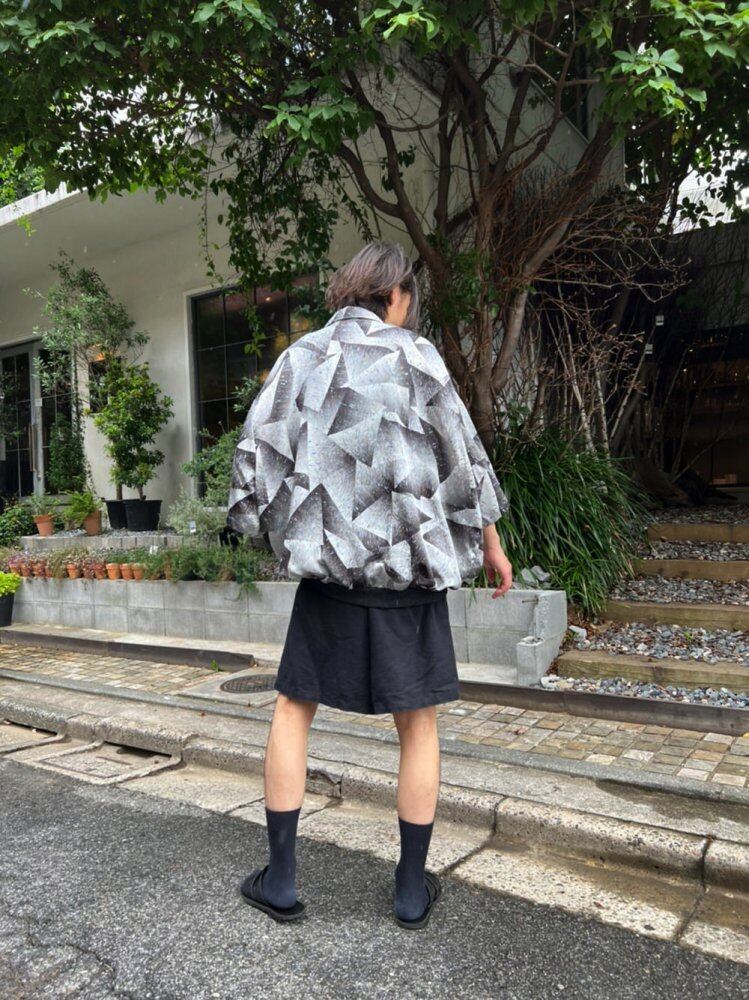 80s pullover shirt The geometric art printed on the glossy fabric gives a three-dimensional and rigid impression. It is the first wear that will do