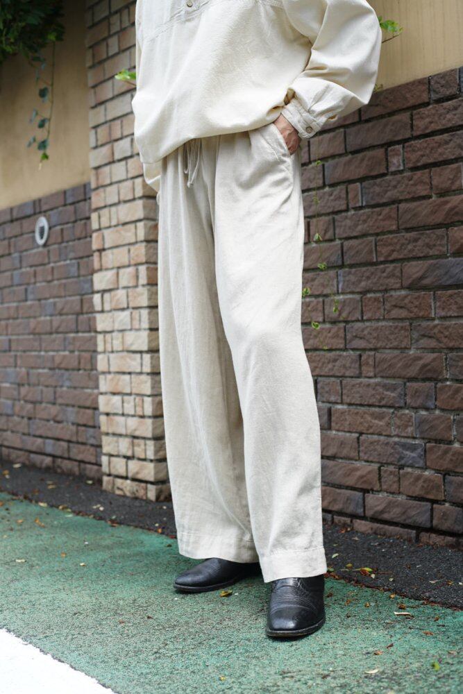 The loose wide silhouette and the swaying fabric give a relaxed impression.