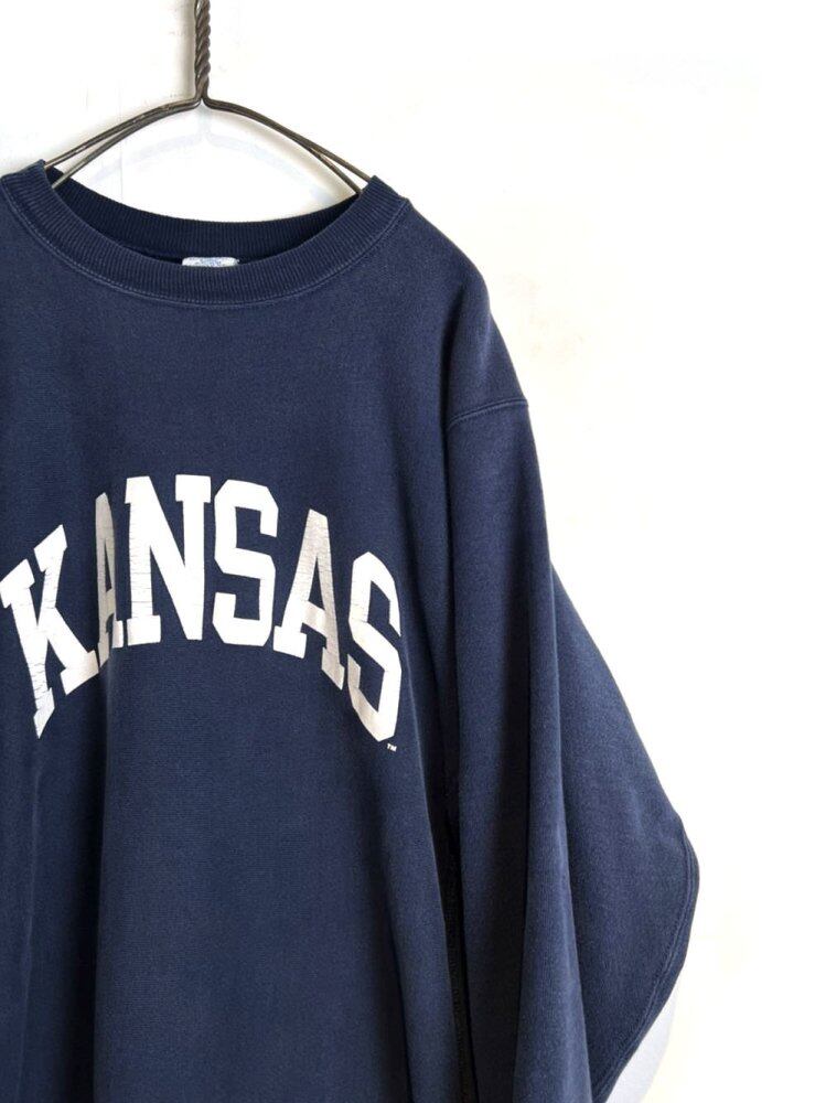 90s Champion Reverse Weave Sweatshirt Moderately faded navy color with white lettering KANSAS