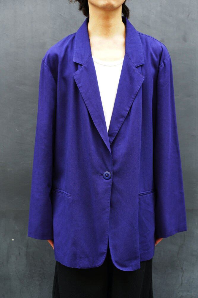 It has a moderately roomy size of 24, a soft line that follows the body while retaining the mannishness of the box silhouette of the time, and a relaxed silhouette without shoulder pads.