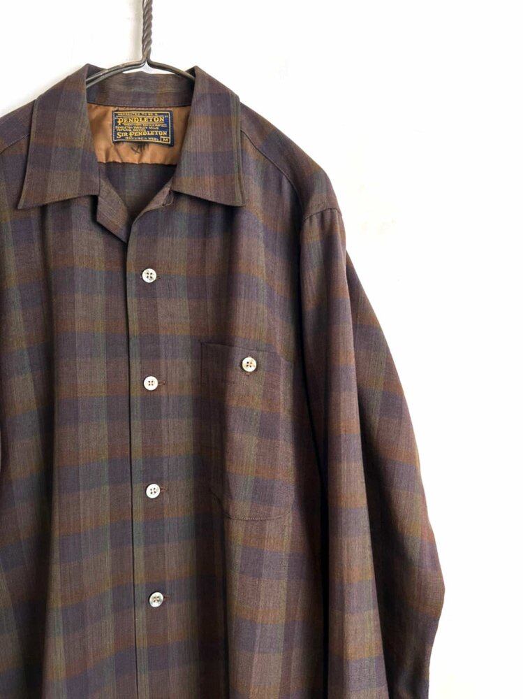 60s Pendleton Wool Shirt Sir PENDLETON Vintage Wool Shirt Pendletons luxury line Sir PENDLETON Vintage Wool Shirt The gabardine-like fabric is thinner and lighter than regular Pendleton wool fabric, and can be used in 3 seasons from spring to winter Brown × A check pattern with a masculine shade of khaki.