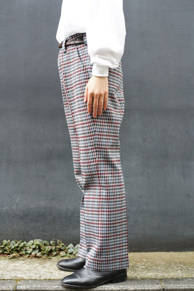 A slacks type dressy design with center press and a retro look with Madras check applied all over.