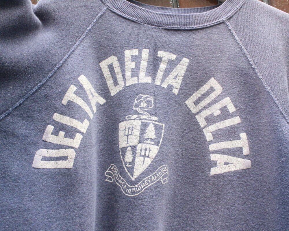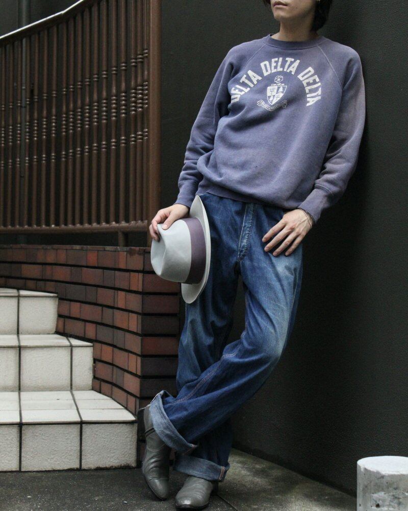 1960s sweatshirt. There are many smaller pieces, but for this age, the silhouette is still roomy with long ribs that are typical of this age. It has a certain appearance. The varsity print design also gives a subdued and calm impression. Quality : Cotton Color : Navy SIZE : Unknown [Size] Yuki (raglan): 81cm Width: 62cm Length: 61cm [Model size] Height: 175cm Shoulder width: 43cm B (chest): 85cm W (waist): 71cm Rare as it is an old item There is aged deterioration etc. Although we try to make the product photos as close to the actual color as possible, the color of the actual product may differ depending on your monitor settings, room lighting, etc. Please check the photos and understand the vintage characteristics before purchasing. ※Please refer to here for the measuring method.