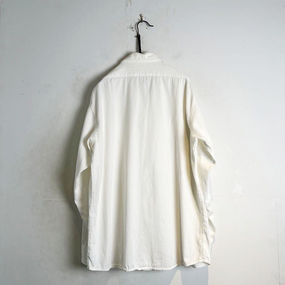 A vintage work shirt from the 1960s. The soft cotton fabric has a nice texture that must have been washed over and over again. One piece with a masculine silhouette that is loose and sized