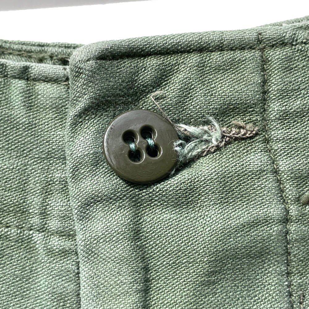 Urea buttons, double stitching on both outseam and inseam, loose tapered silhouette.