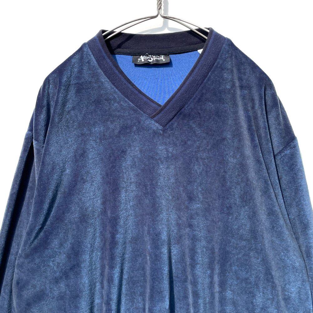 A velor V-neck top made by the long-established brand Alan Stuart.